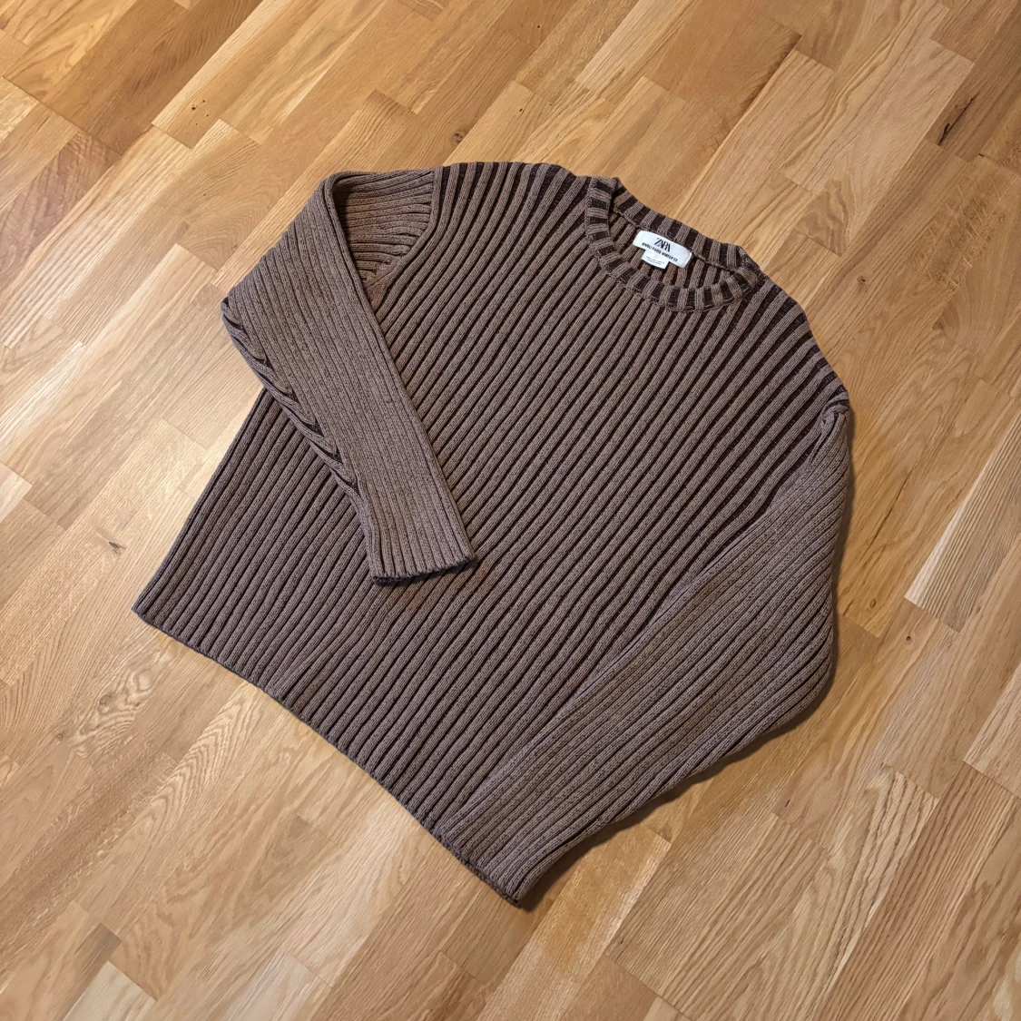 Säljer en brun ribbstickad tröja från ZARA med rund halsringning och lång ärm. Tröjan har en loose passform och är tillverkad i ett mjukt stickat material som passar perfekt för höst och vinter. Enkel att styla med jeans eller kjol. Använd ett fåtal gånger, 9/10 i skick