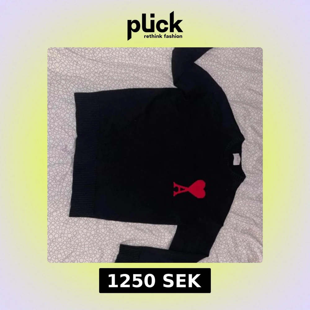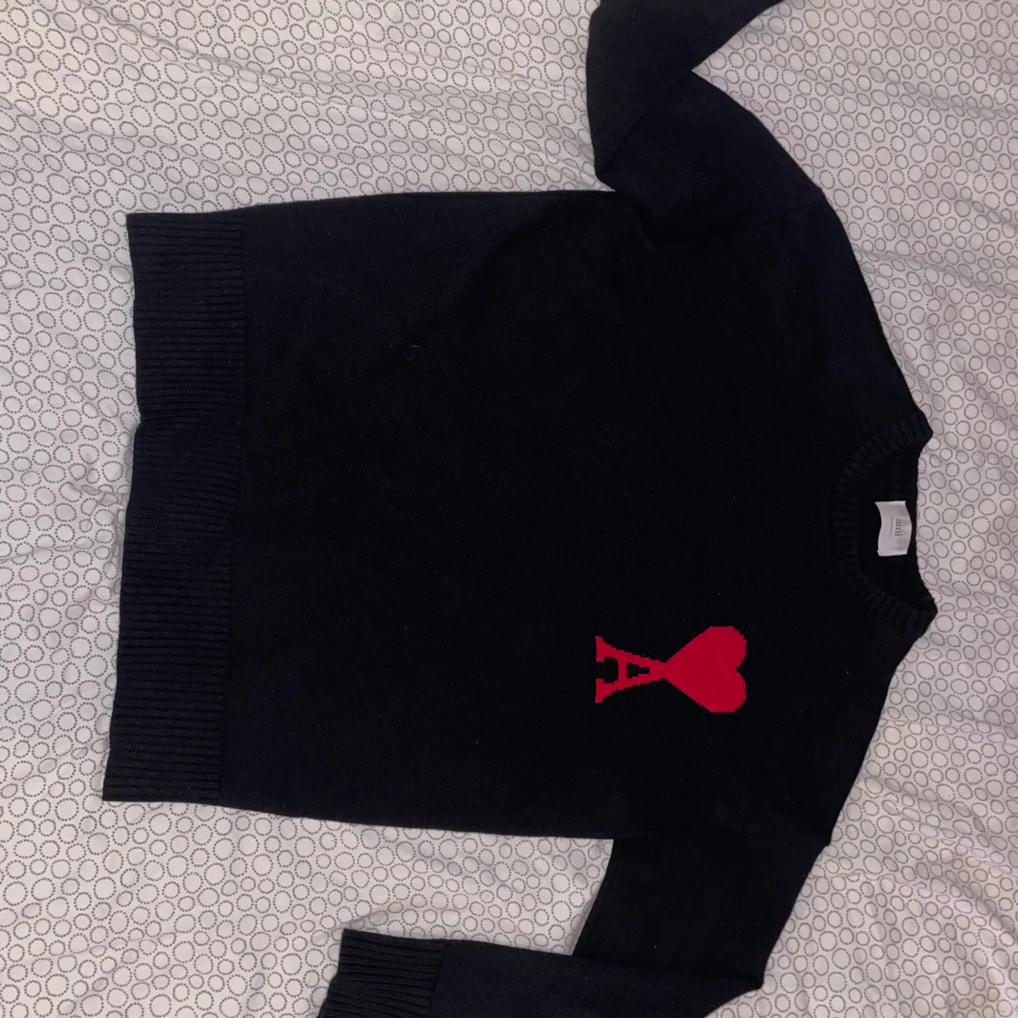 Svart stickad tröja från Ami Paris med röd hjärtlogga och bokstaven A framtill. Klassisk rund halsringning och ribbade muddar vid ärmslut och nederkant. Perfekt för dig som gillar stilrena plagg med en twist.