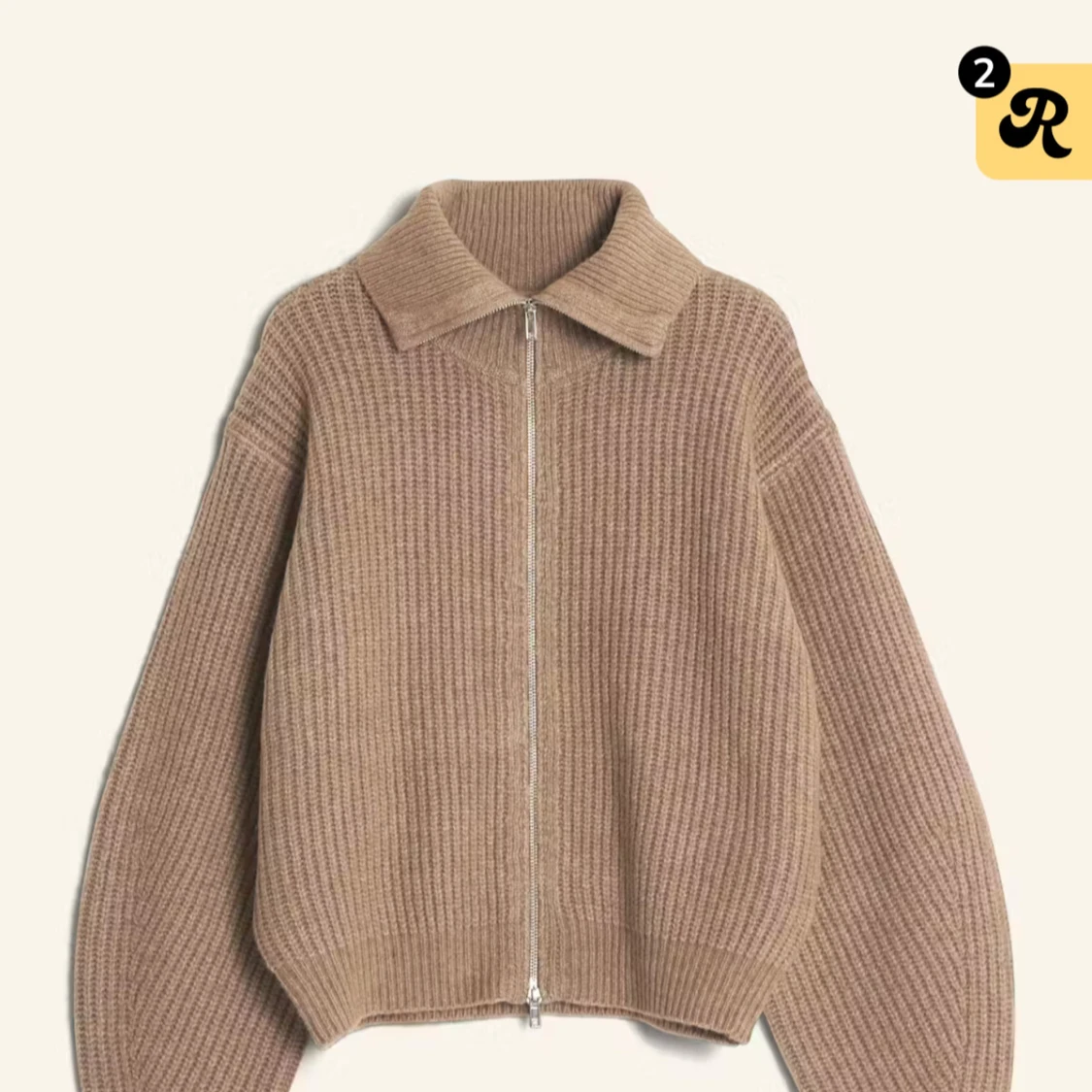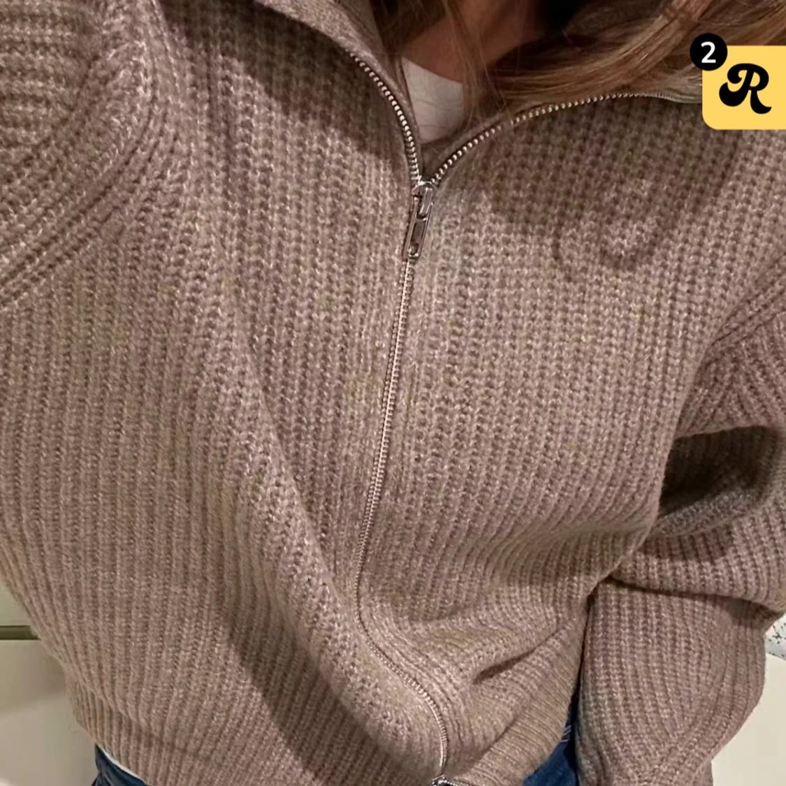 Beige stickad kofta med dragkedja