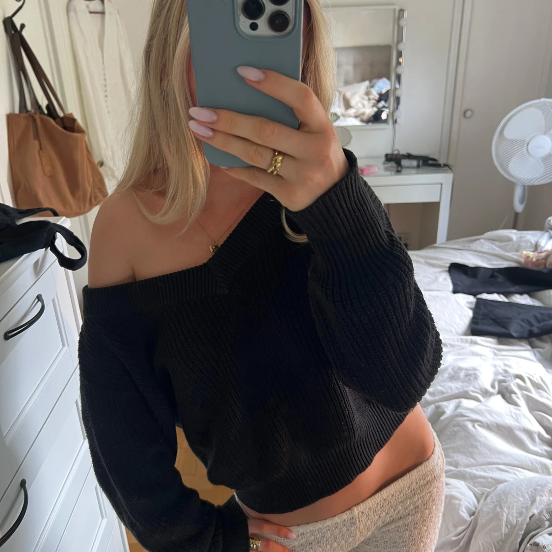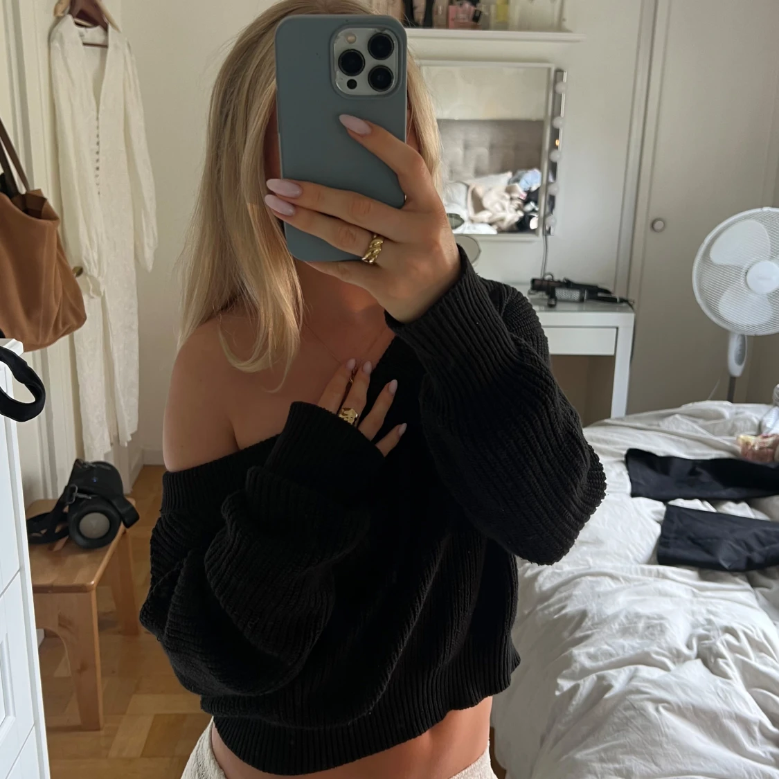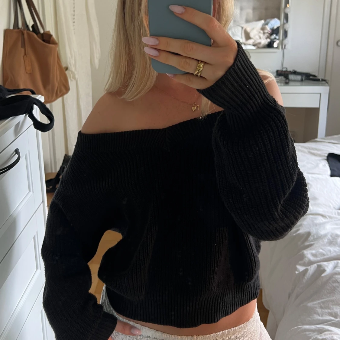 Säljer denna så snygga stickade tröja som går att ha både off sholder eller på ”sidan” ner för en axel.