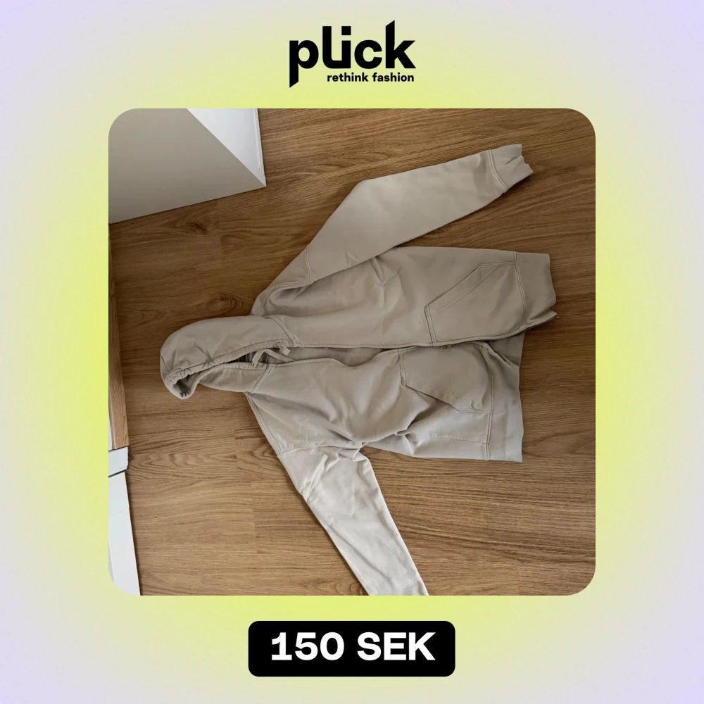 Säljer en beige hoodie i normal passform. Den är perfekt för höst och vår med sin mjuka och bekväma känsla. Hoodien har en klassisk design med en stor ficka framtill och långa ärmar. Perfekt för en avslappnad stil!