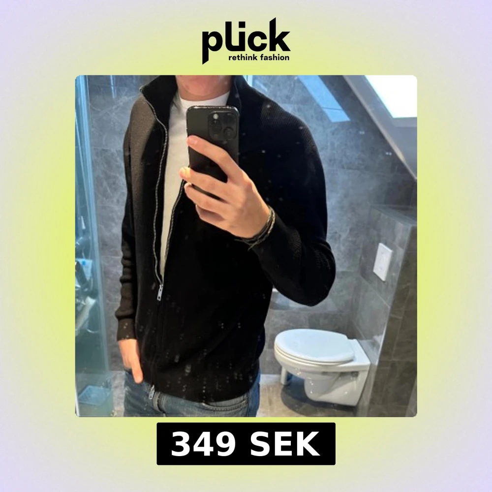 Svart stickad kofta från H&M passar perfekt nu till höst och vinter. Tröjan är i riktigt bra skick och har inga defekter. Jag på bilden är 188cm. Hör av er vid frågor:)