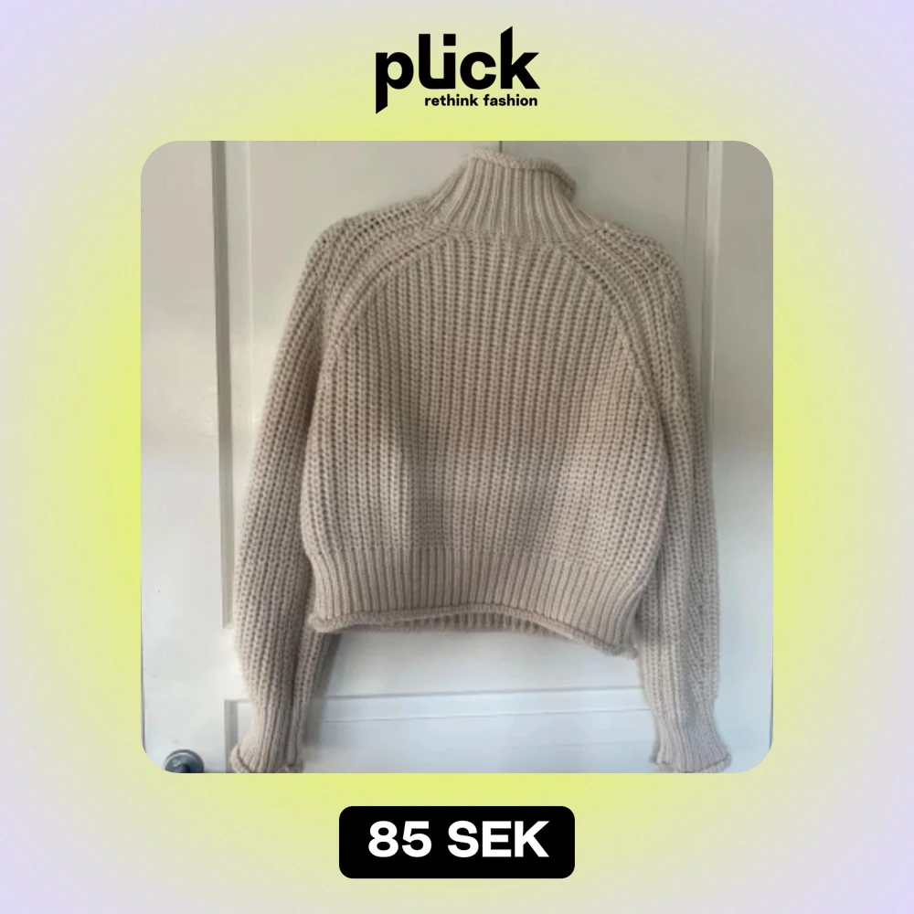 Säljer en supermysig beige stickad tröja från H&M. Den har en hög krage och långa armar🧸🤎
