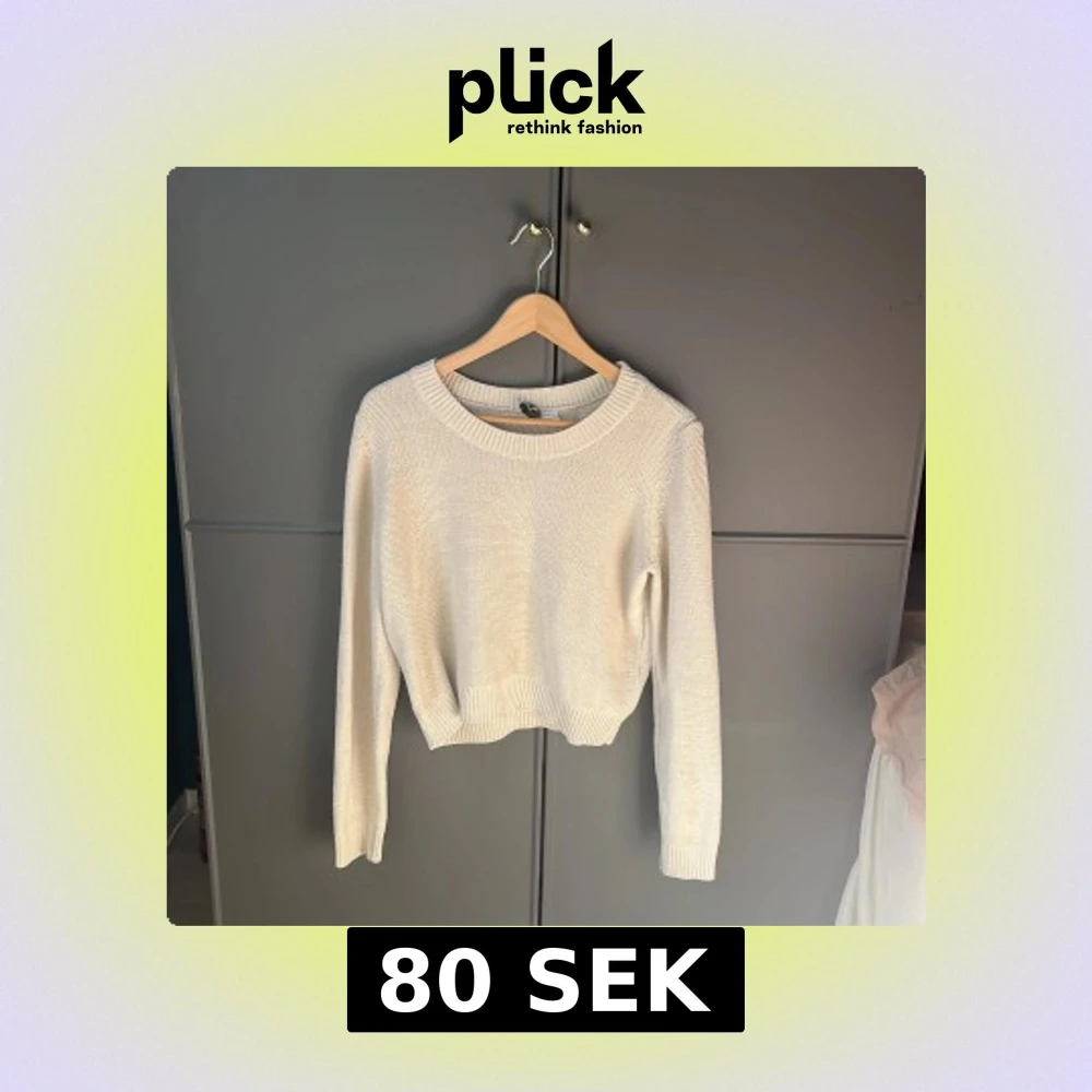 Säljer en stilren vit/beige stickad tröja med rund hals och långa ärmar. Perfekt för kyligare dagar och enkel att matcha med olika outfits. Tröjan har en ribbad kant vid ärmslut och nederkant för en snygg passform.💕💕