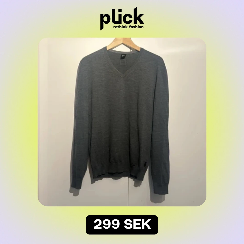 Säljer en stilren grå tröja från Hugo Boss i storlek XL. Den har en klassisk v-ringning och är perfekt för både vardag och lite finare tillfällen. Tröjan är långärmad och gjord i ett mjukt material som känns skönt mot huden. Passar perfekt till höst och vinter!