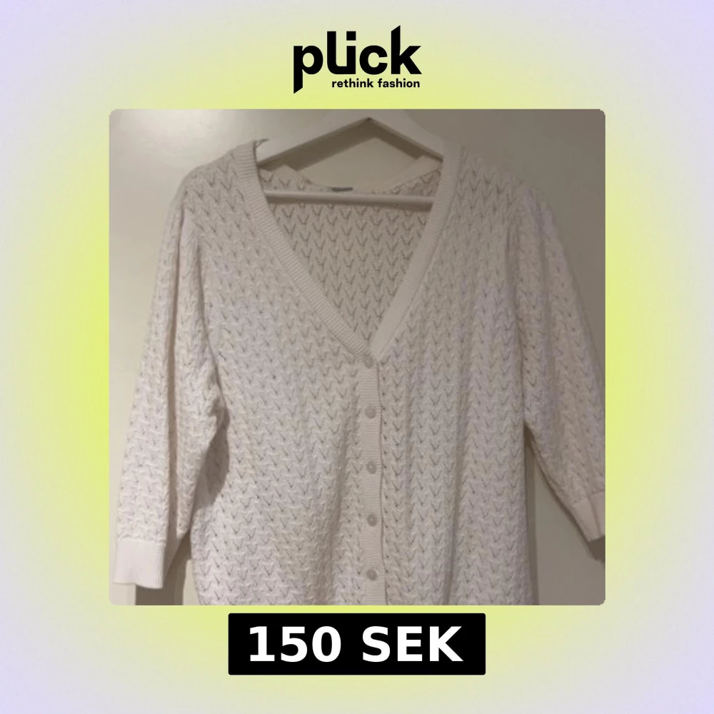 Säljer en vit stickad kofta. Koftan har v-ringning, fina stickade detaljer och knappar framtill. Perfekt för lager-på-lager och har trekvartsärm. Supermjuk och lätt att matcha med allt. Den har även trekvartsärmar. Knappt använd💞