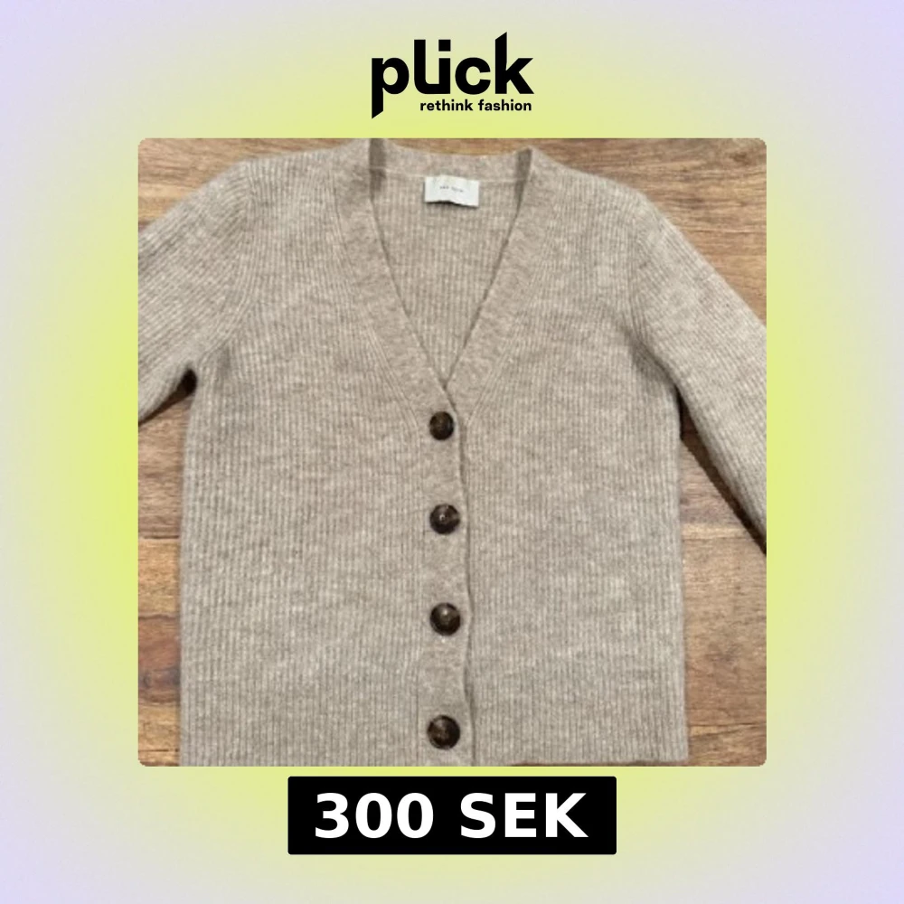 Säljer en stilren beige kofta från Neo Noir. Den är ribbad med en v-ringning och har stora knappar framtill. Perfekt för att hålla sig varm och snygg under kyligare dagar.