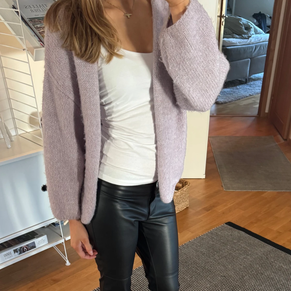 Ljuslila stickad kofta
