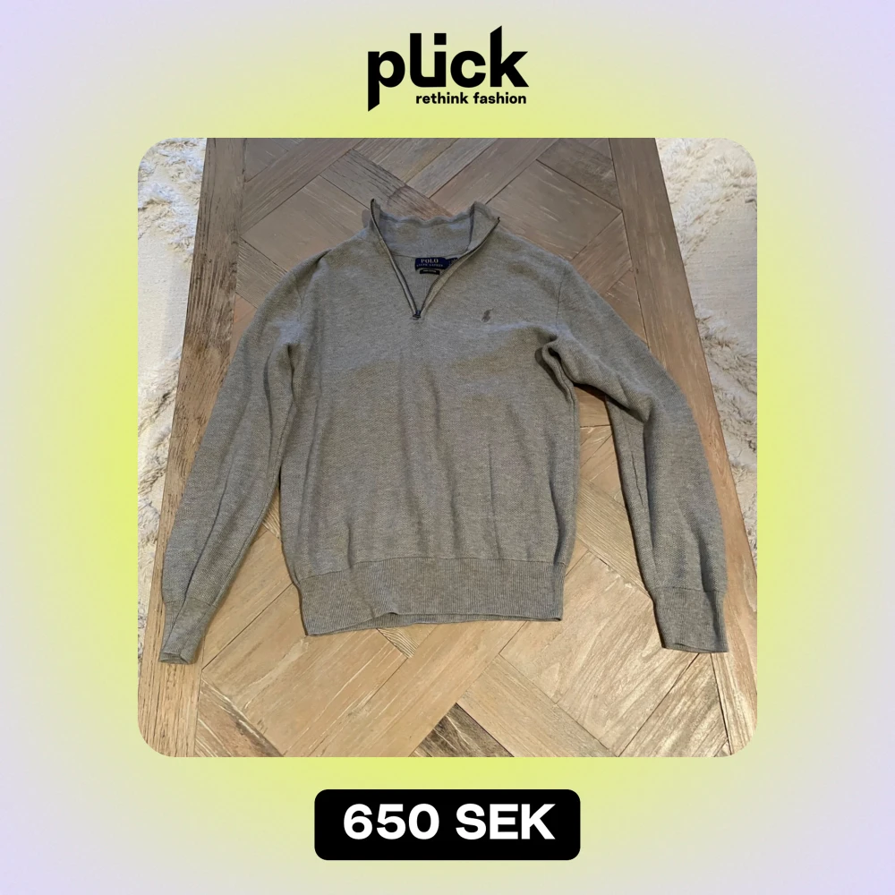 Säljer en stilren grå tröja från Polo Ralph Lauren i mjuk pima bomull. Tröjan har en dragkedja vid halsen och långa ärmar. Perfekt för både höst och vår, och funkar lika bra till vardags som till lite finare tillfällen.