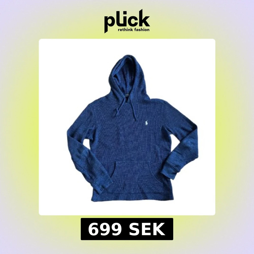 Str S- Mysig blå hoodie från Polo Ralph Lauren med broderad logga på bröstet. Tröjan är ribbstickad, har huva med snörning och en stor magficka. Perfekt för dig som gillar en avslappnad och stilren look. Långärmad och i mjukt material. Perfekt för hösten som kommer nu! Hör av er om ni har frågor!