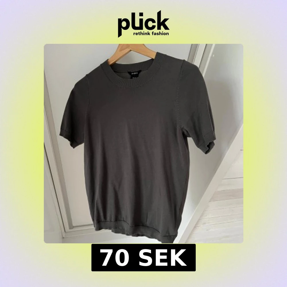 Säljer en finstickad grå T-shirt från Lindex. Den är kortärmad med rund halsringning och ribbade kanter. Knappt använd!