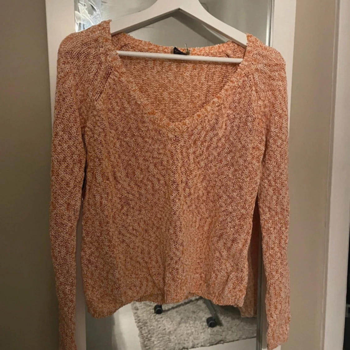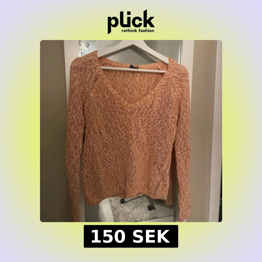 Säljer en mysig orange stickad tröja med v-ringad hals. Super fin till sommaren!!