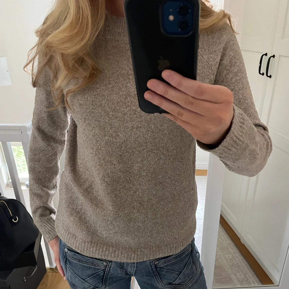Säljer en klassisk beige stickad tröja från Veromoda. Super fint skick, inga skador alls! Storlek S
