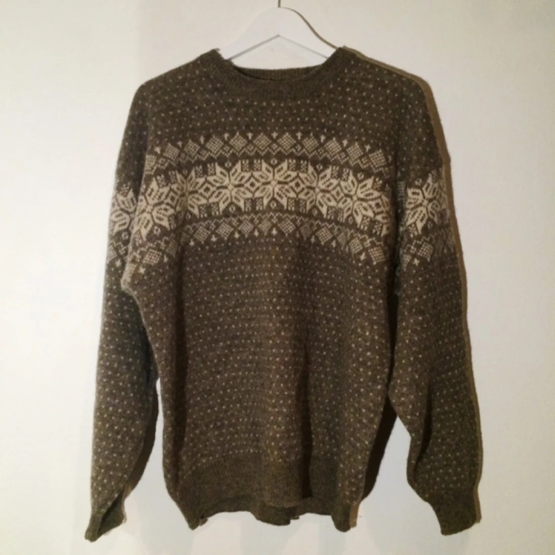 brungrå stickad tröja med mönster, perfekt för hösten!! endast använd ett fåtal gånger