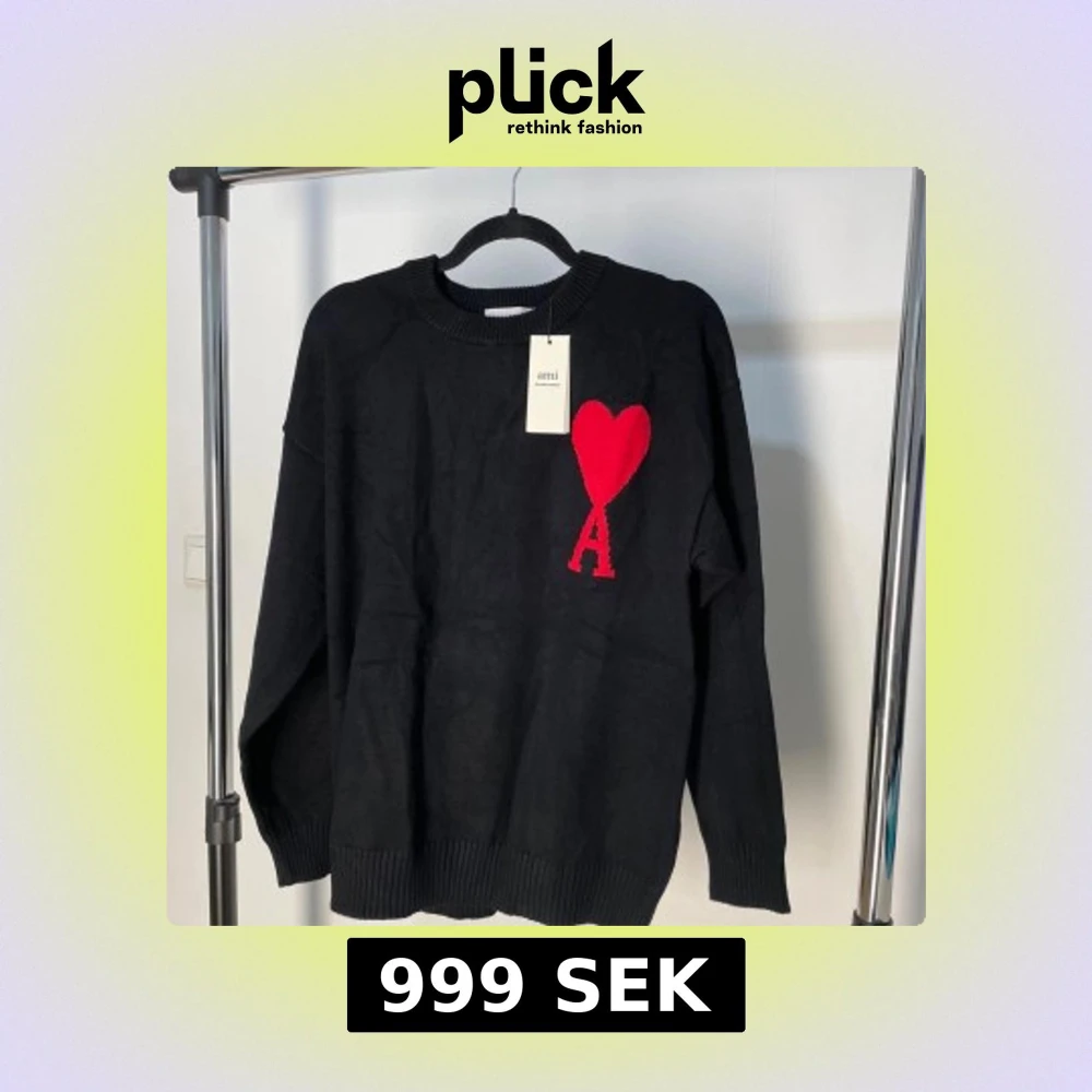 Svart stickad tröja från Ami. Tröjan är i nyskick och perfekt för dig som gillar unika plagg.