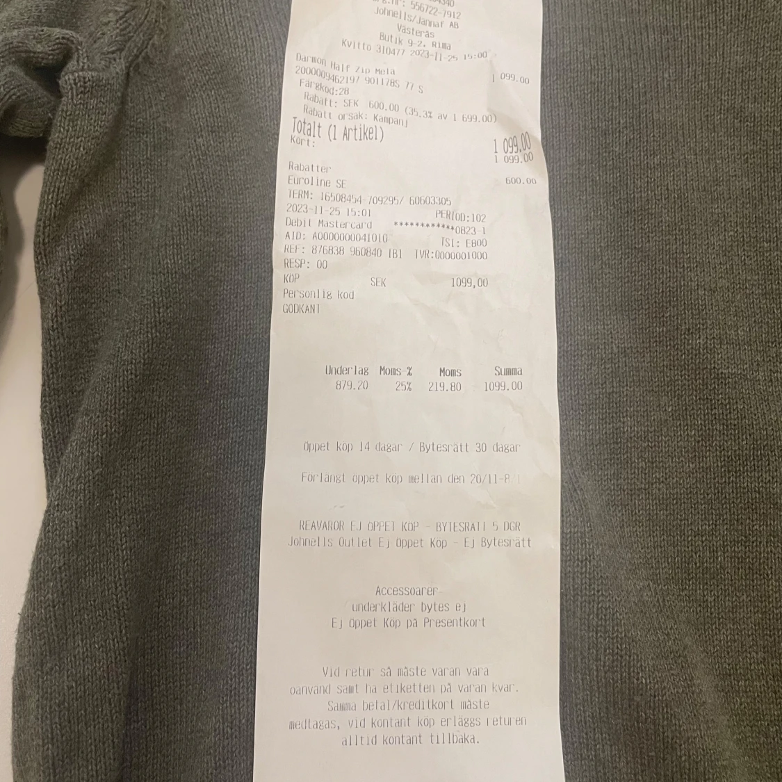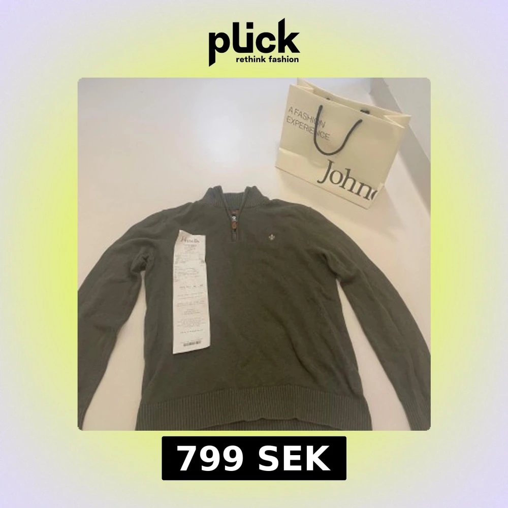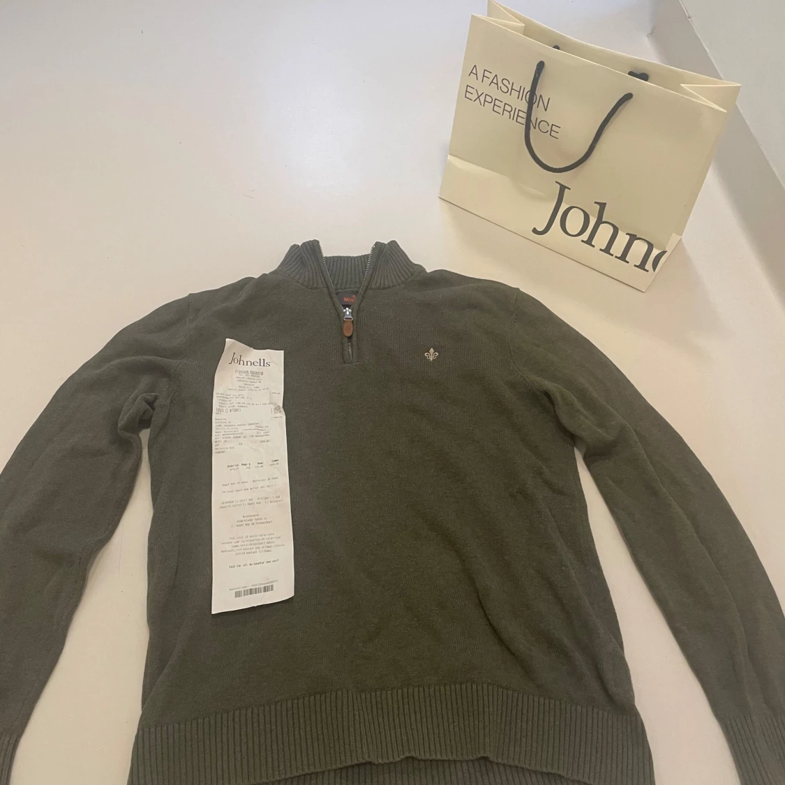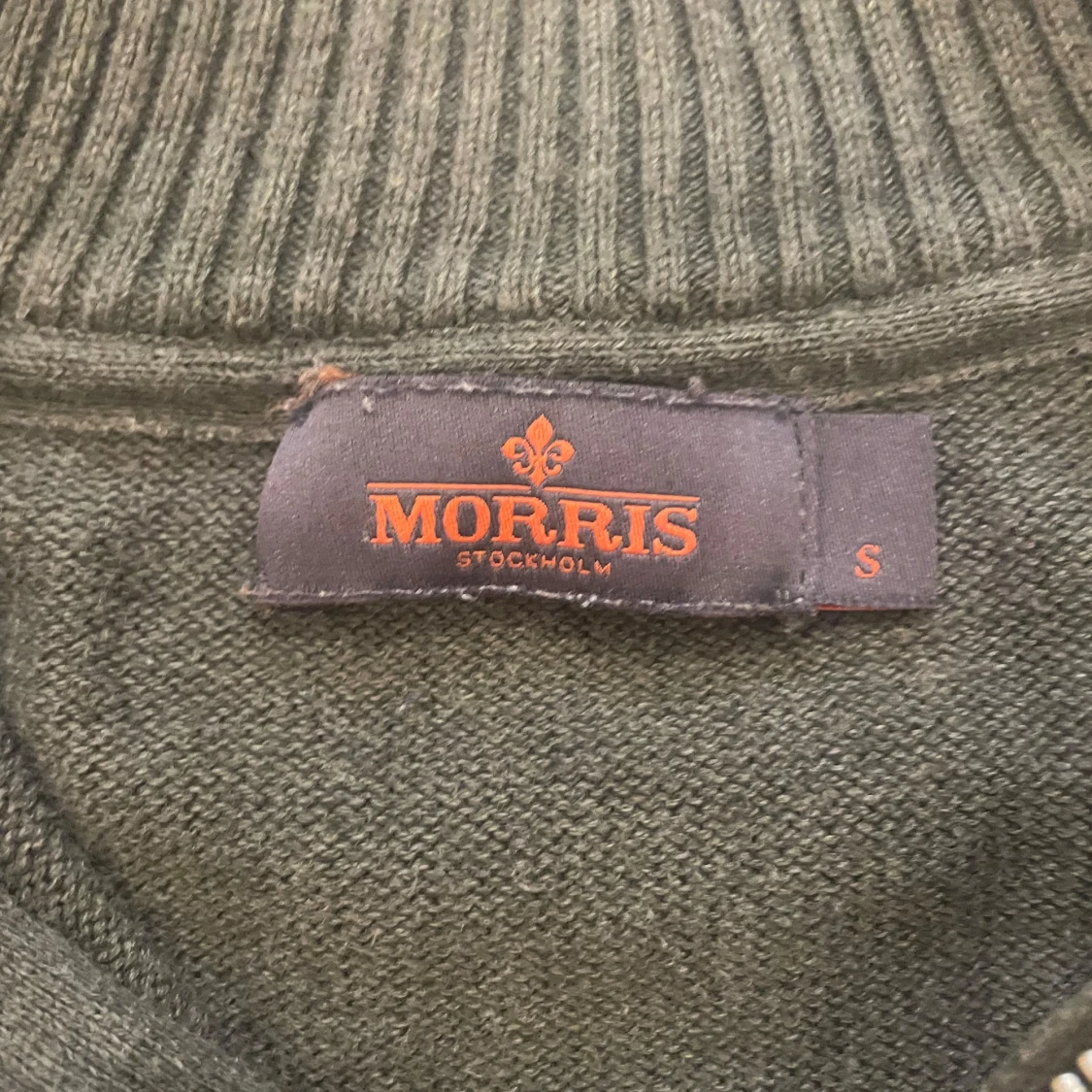 Snygg olivgrön stickad tröja från Morris med half zip och ribbad krage. Tröjan har ett litet broderat emblem på bröstet och ribbade muddar vid ärmslut och nederkant. Perfekt för dig som gillar klassisk stil med en modern touch. Tröjan är i jättebra skick och har inga defekter. Kvittot till tröjan finns. Nypris är 1700kr. Johnelles påsen kommer med på köpet och de gör även kvittot. Hör av er vid minsta fundering