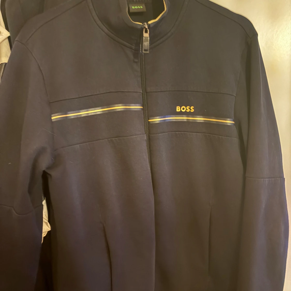 Svart ziptröja från BOSS med gula detaljer