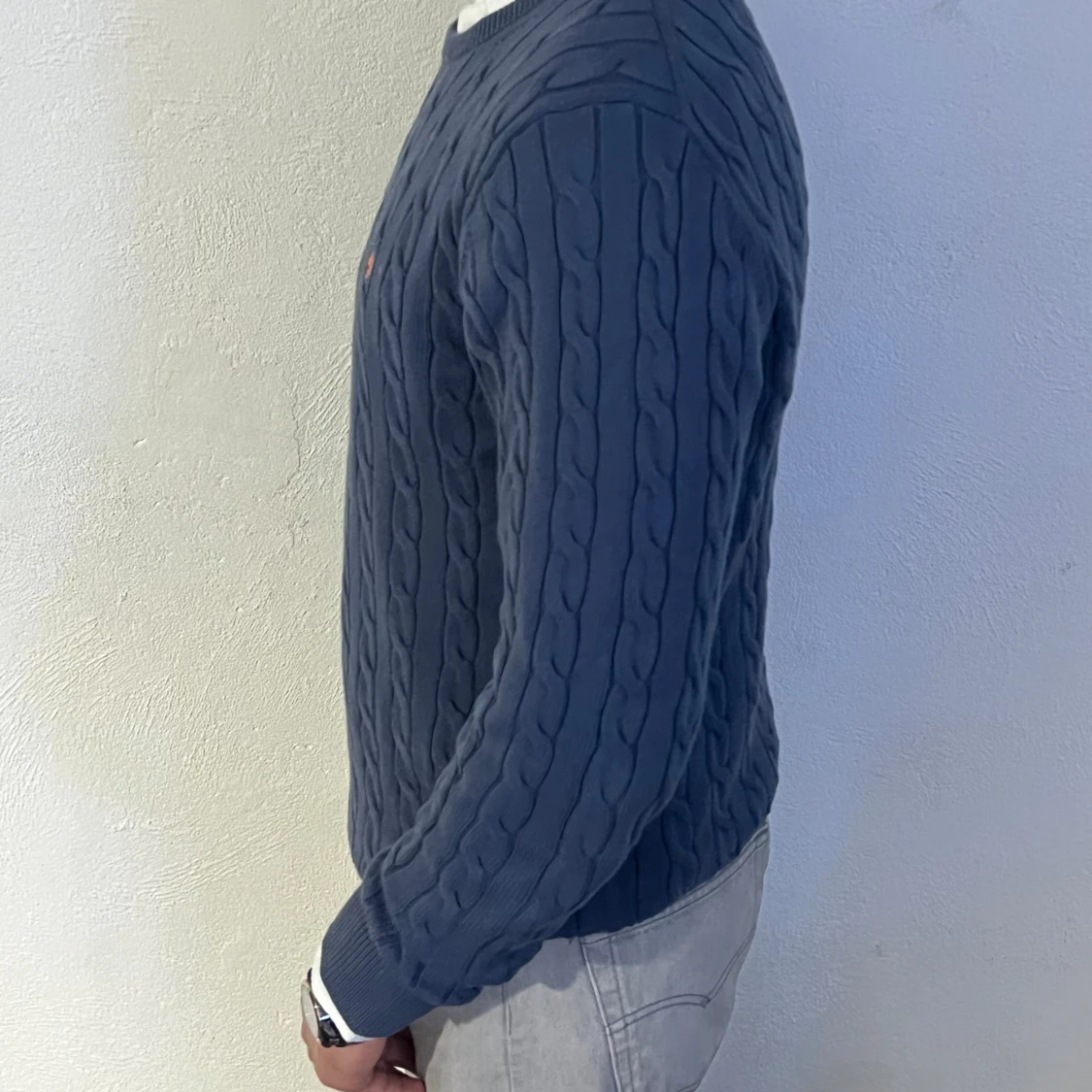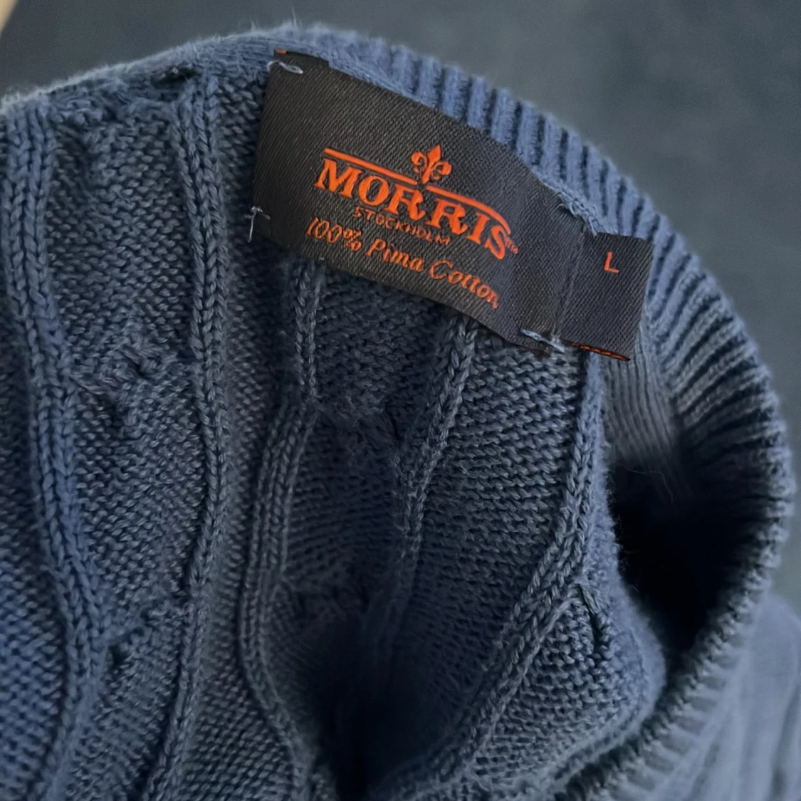 Morris stickad tröja, den är i fin skick och felfri. Den är i L storlek, men skulle också sitte som M, dock lite lösare. Är 180 cm och väger 73 kg