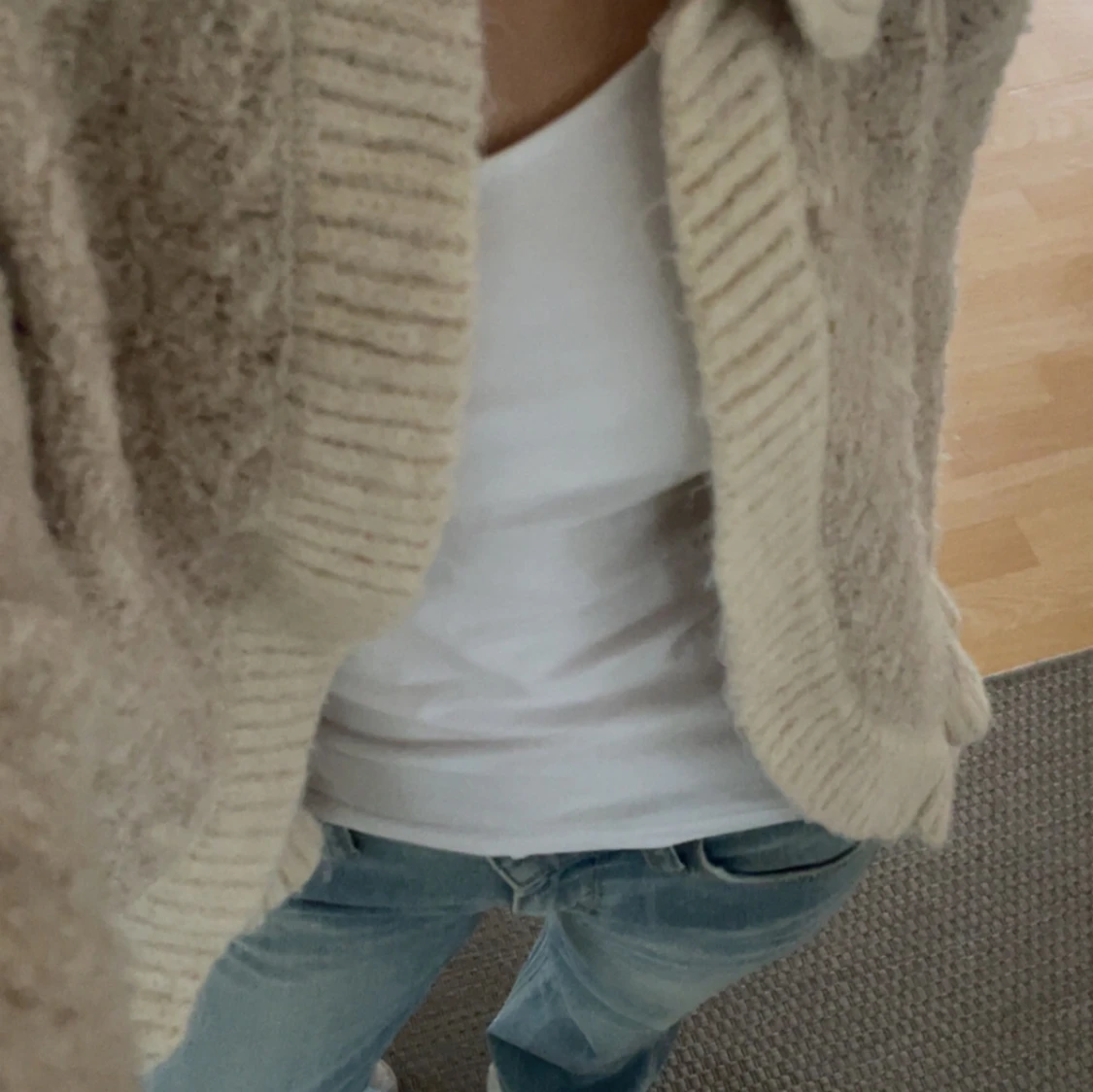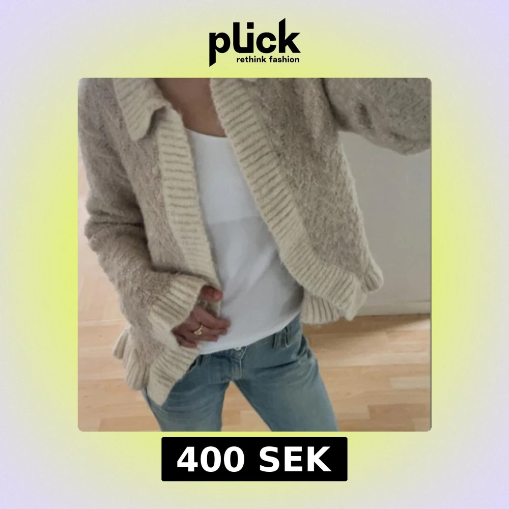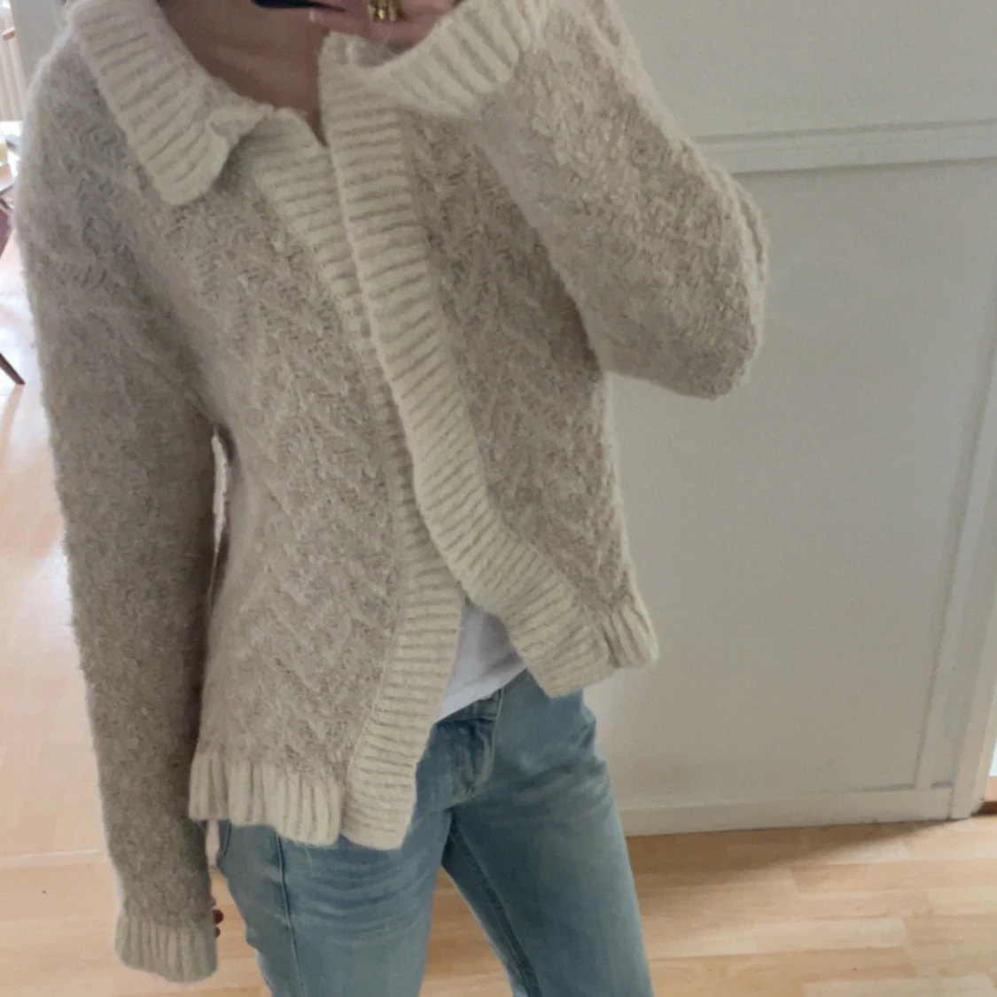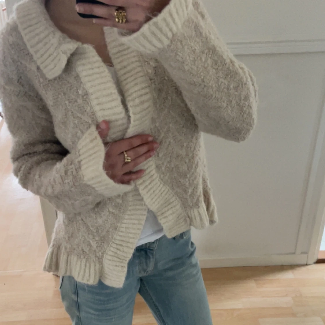 Mysig beige stickad kofta med krage och ribbade detaljer från Zara i stil XS, använd ett fåtal gånger💗