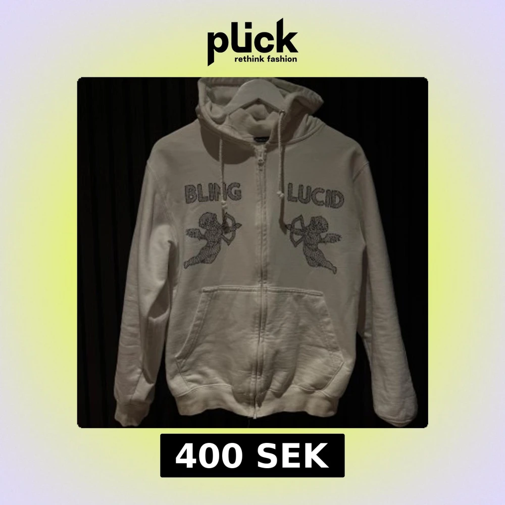 Vit hoodie med dragkedja och huva från Bling Lucid. Tröjan har snörning vid huvan och är i nyskick endast använd få gånger, Storlek S har även en svart i samma stil och storlek