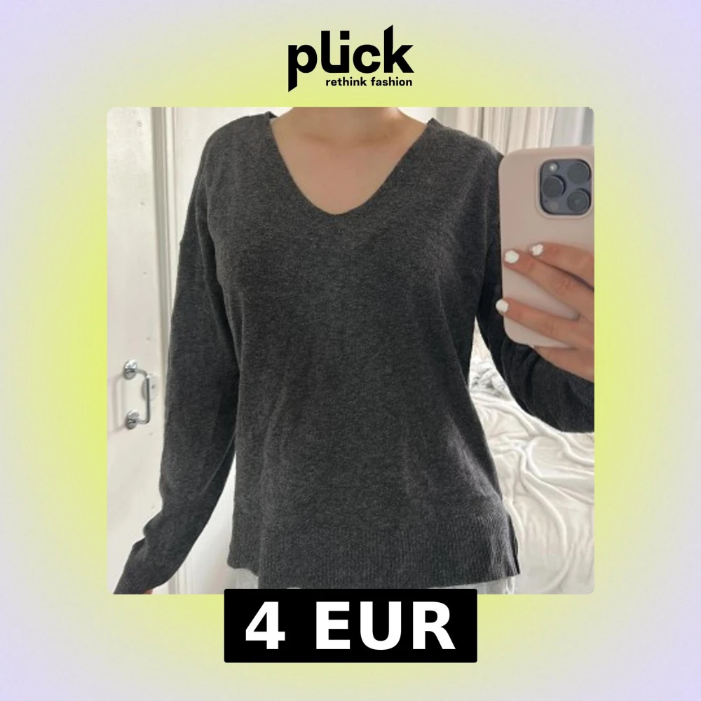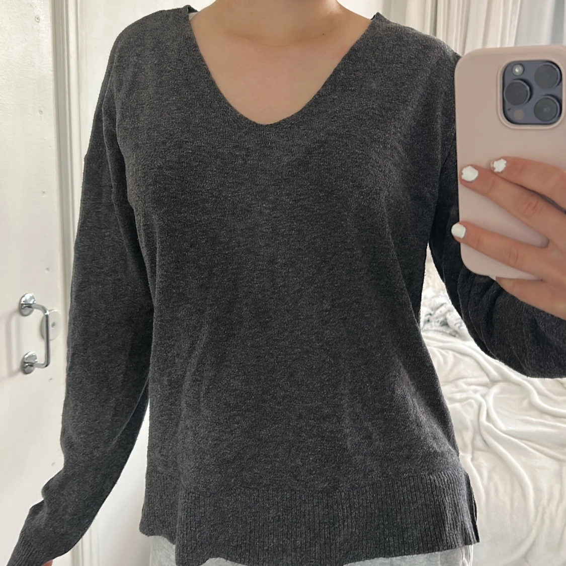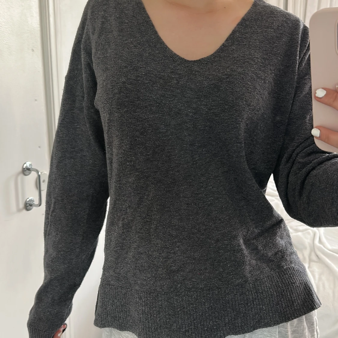En enkel och snygg mörkgrå stickad tröja med v-ringad hals.❤️