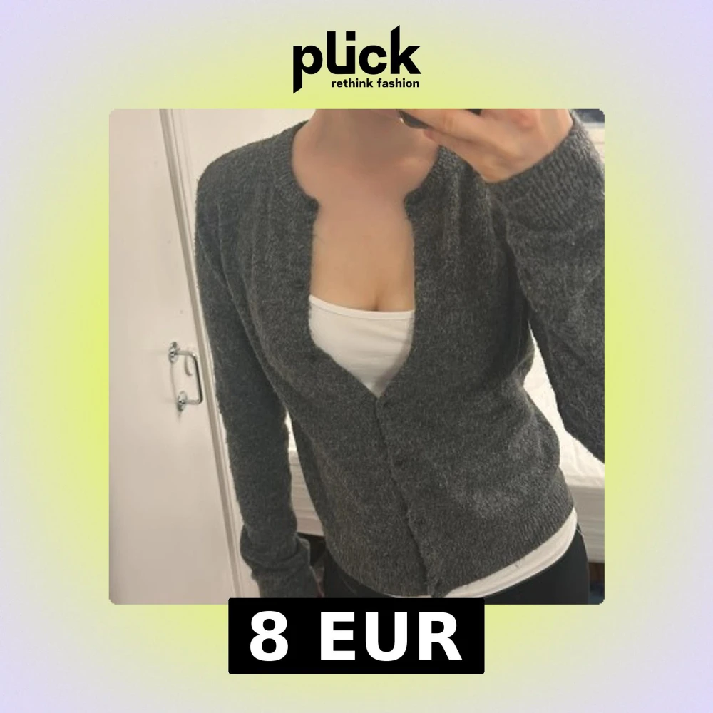 Mysig mörkgrå stickad kofta med rund halsringning och knäppning framtill.❤️