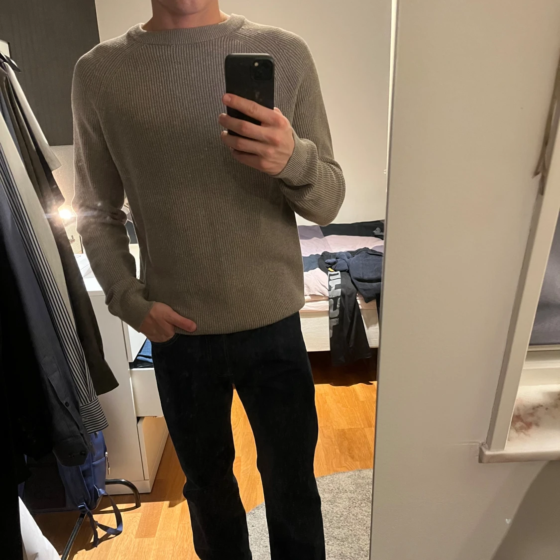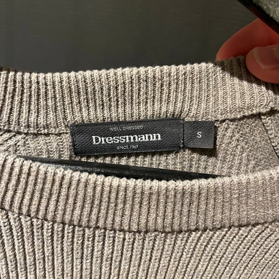 Säljer en stickad tröja från Dressmann i storlek S. Tröjan har ribbad struktur, rund hals och långa ärmar. Enkel och clean design som är lätt att matcha med jeans eller chinos. Jätteskön och stilren tröja. Nypris 499kr.