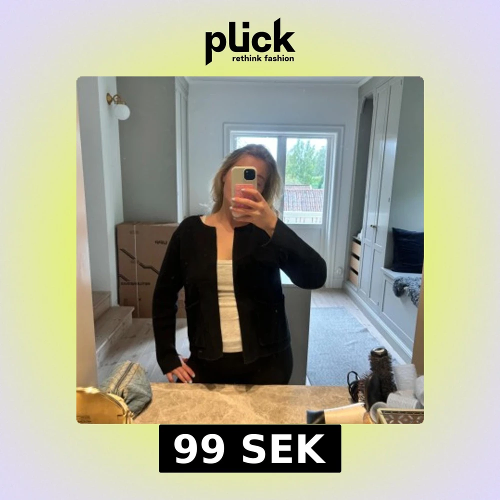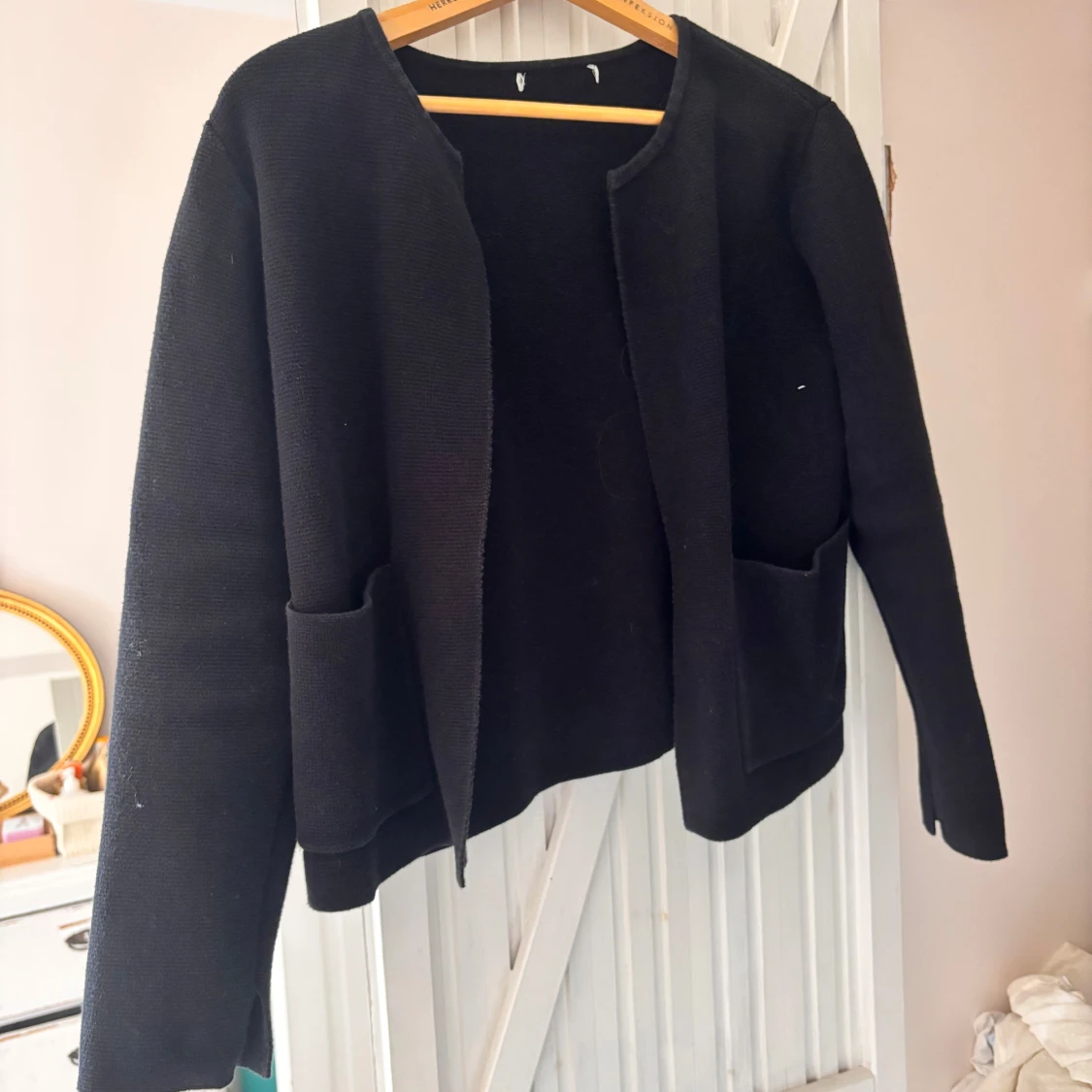 Svart kofta som är öppen utan knappar eller dragkedja med fickor🫧🫧