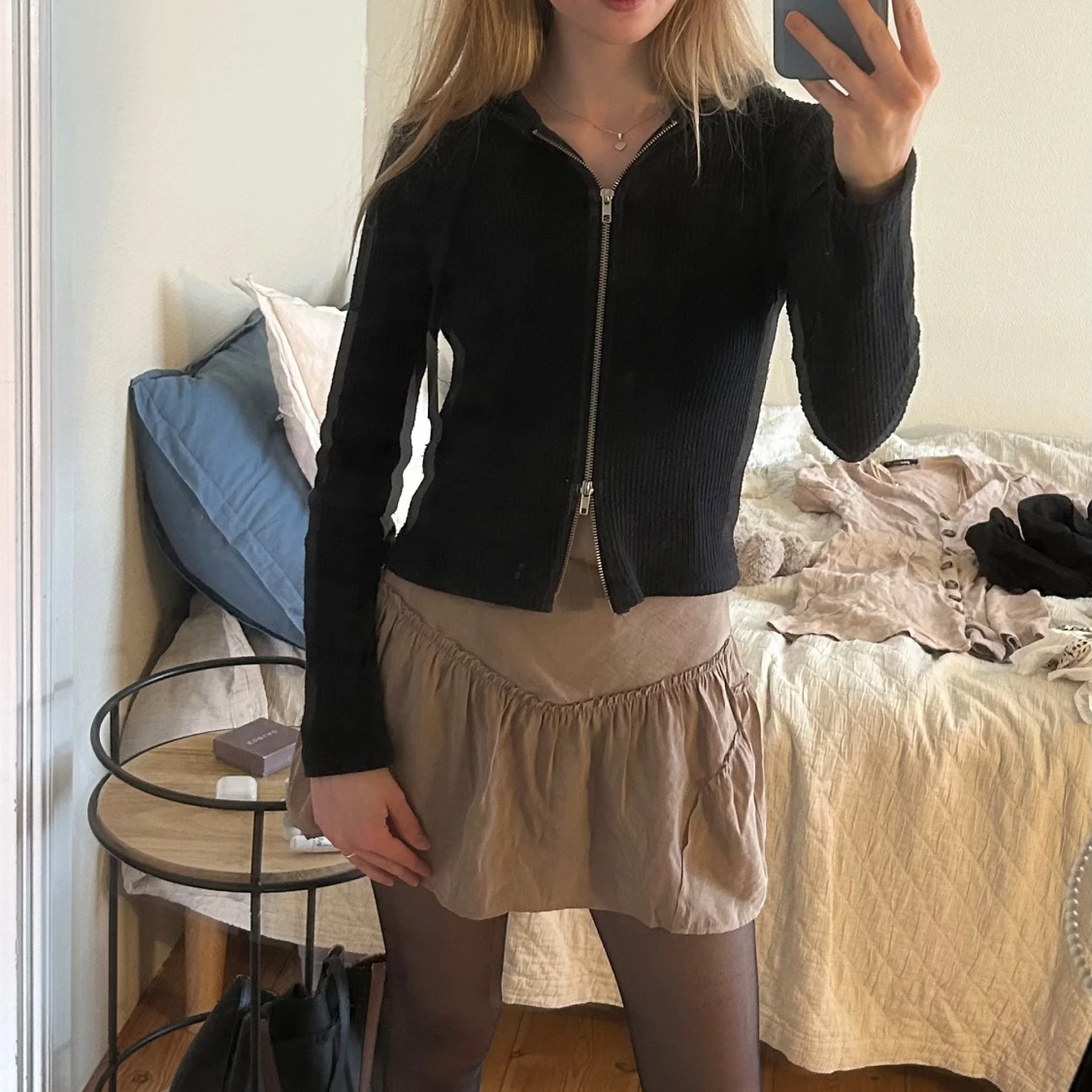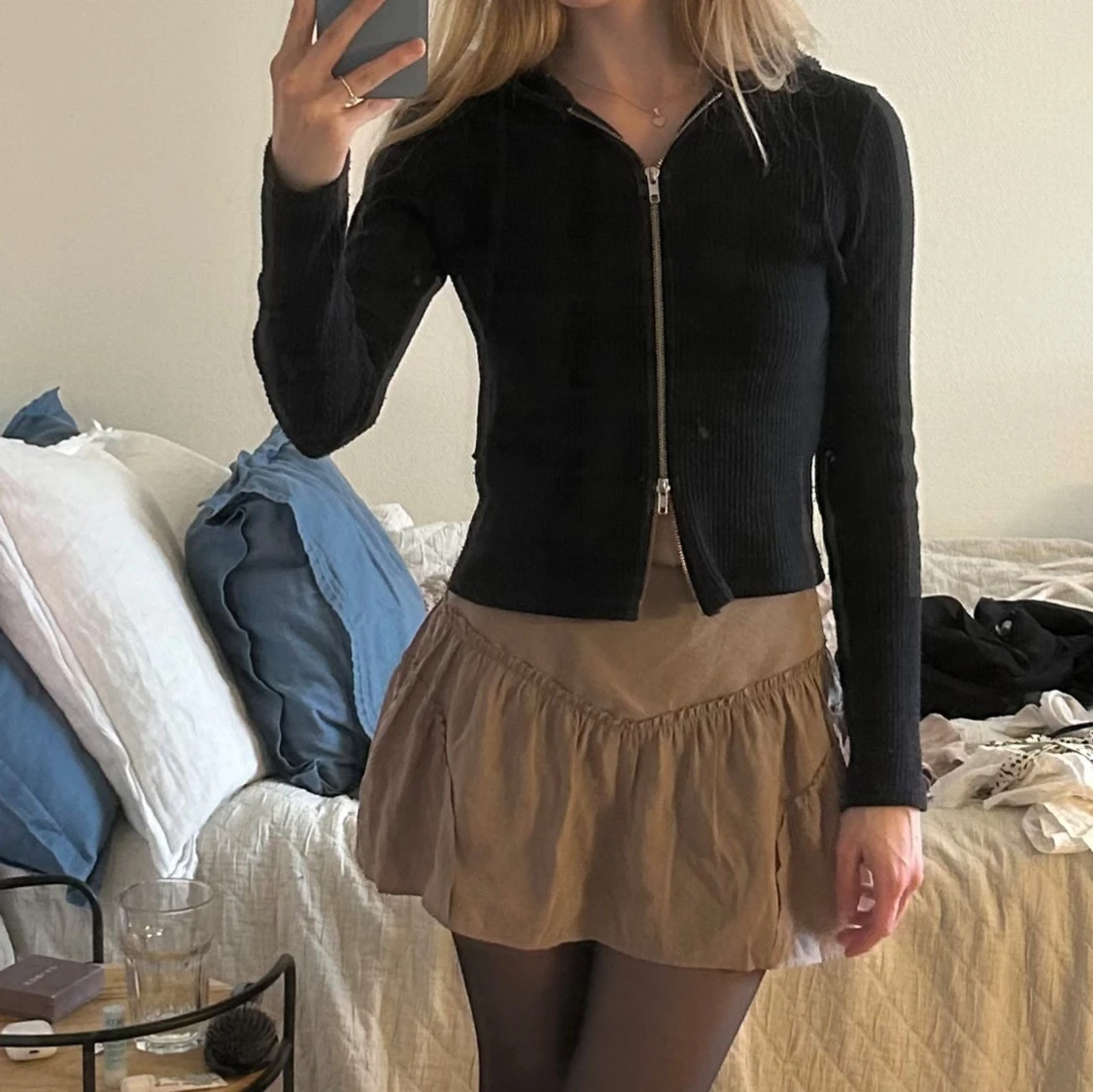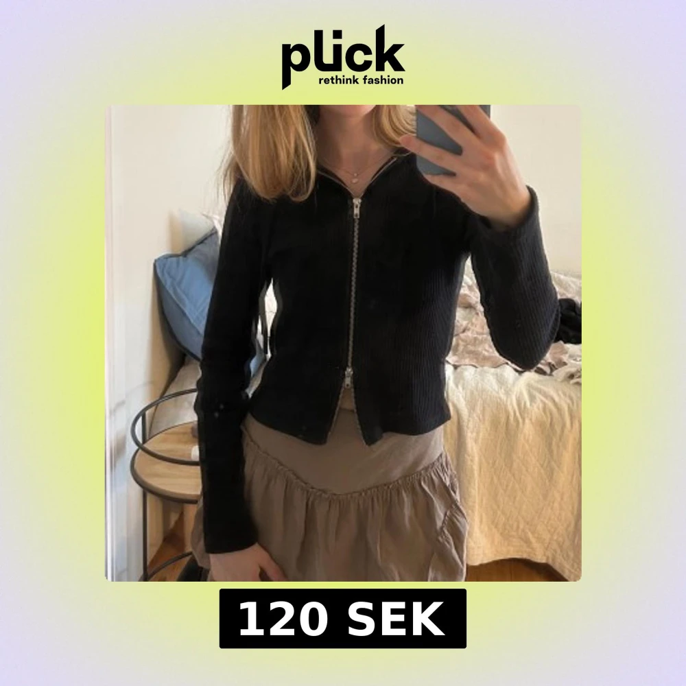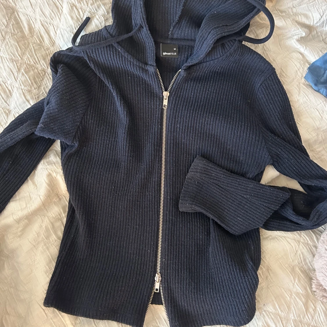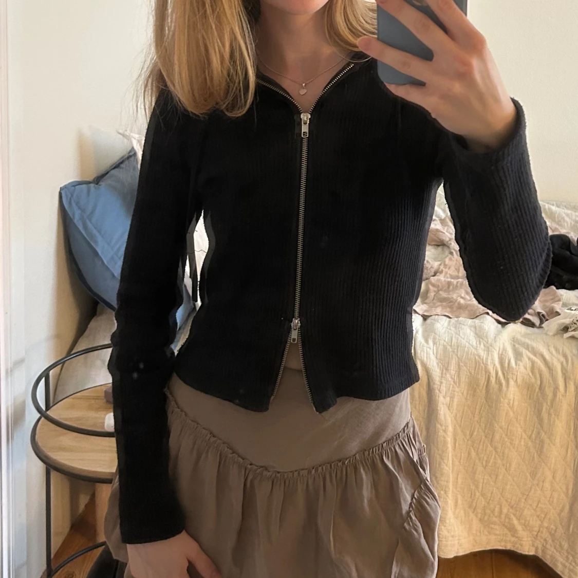 Jättefin kofta med dragkedja upp och nedtill, populär och såldes slut! Strl M men passar mig som har S. Marinblå (kanske ser svart ut på bild)