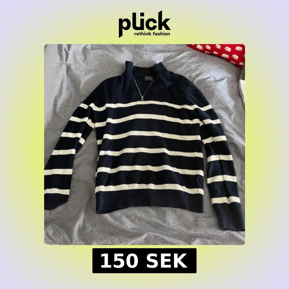Snygg svart och vit randig tröja med dragkedja i halsen från hm storlek M