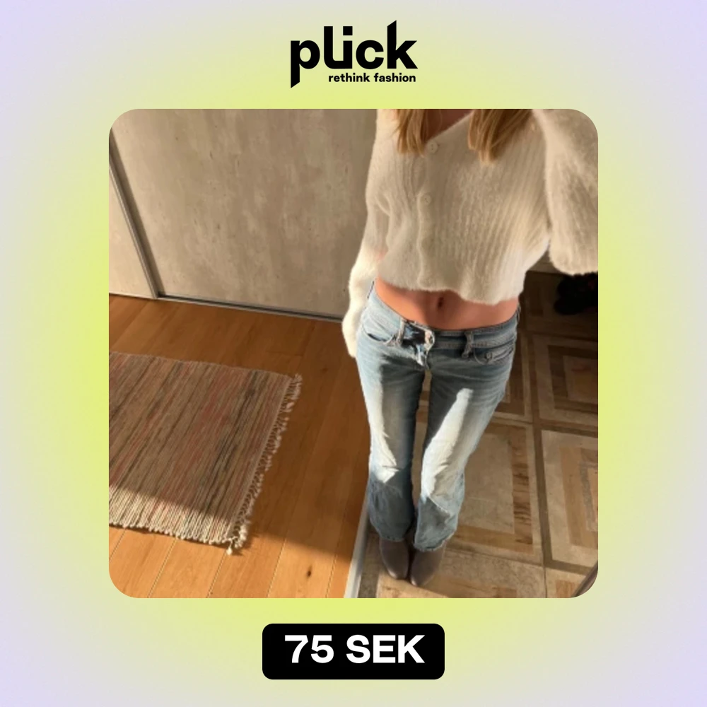 Säljer en supermysig vit stickad kofta. Den är croppad och har långa ärmar med knappar framtill. Har inte används mycket!