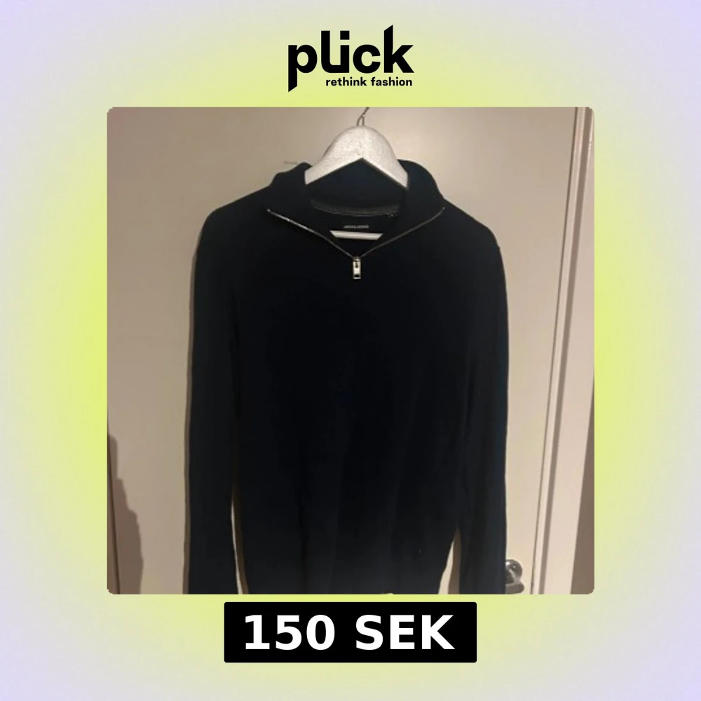 Mörkblå långärmad tröja från Jack & Jones med stilren half zip-dragkedja vid halsen. Tröjan är stickad och har en klassisk passform som funkar till många olika looks. Perfekt för dig som gillar enkel och clean stil.
