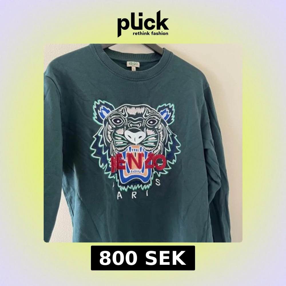Mörkgrön sweatshirt från Kenzo med ikonisk tigerbrodyr och röd/blå/vit Kenzo-logga framtill. Tröjan har rund hals, långa ärmar och är gjord i mjuk bomull. Perfekt statement-plagg för dig som gillar streetstyle och vill sticka ut. Snygg att dressa med en skjorta under! Nypris: 3999kr