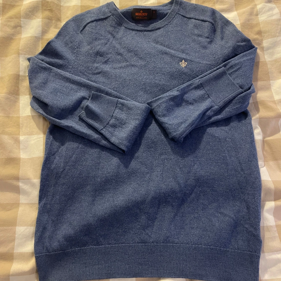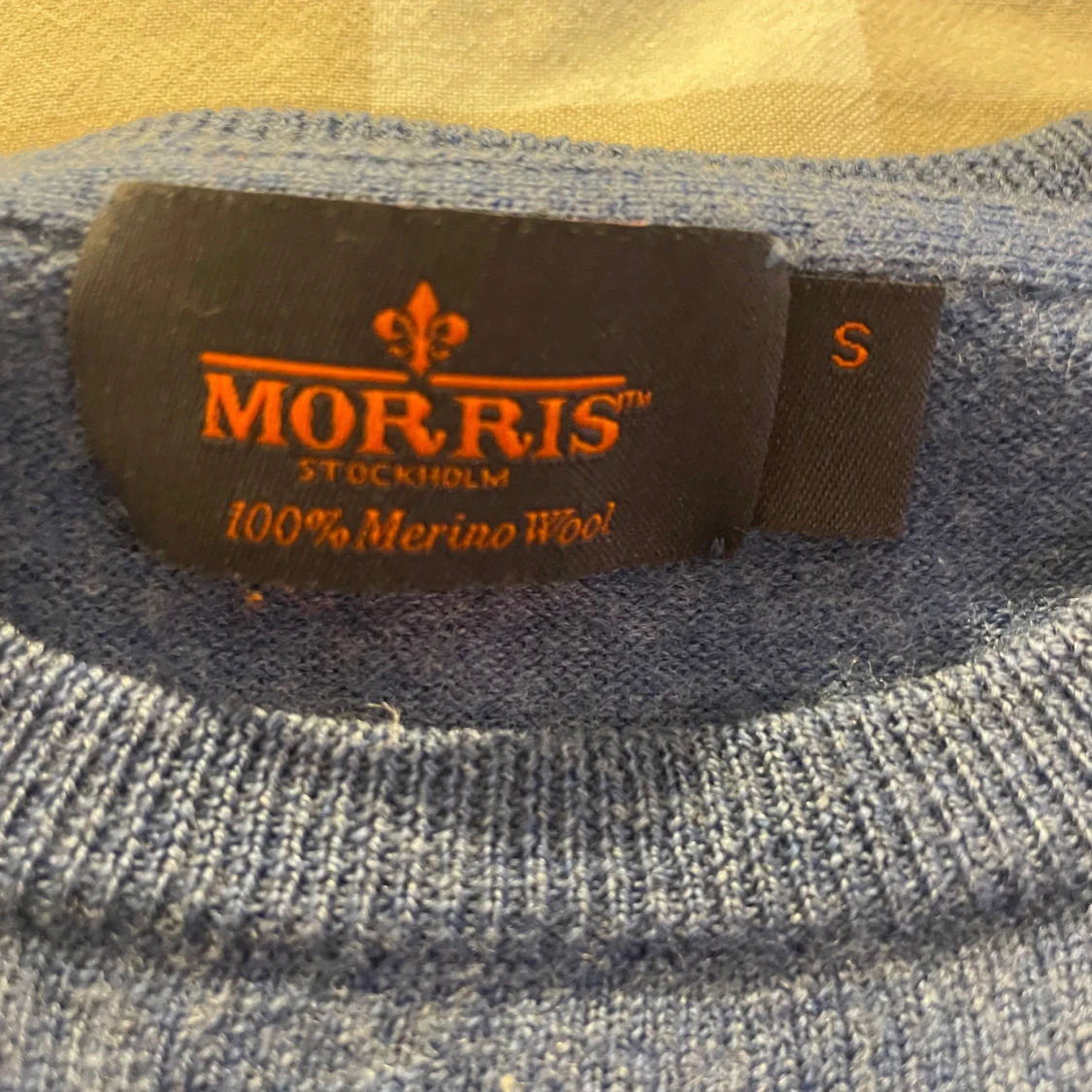 Säljer en stilren blå tröja från Morris i 100% merinoull. Tröjan är i riktgt bra skick med inga skador. Hör av dig vid intresse eller bara om du har frågor 💛