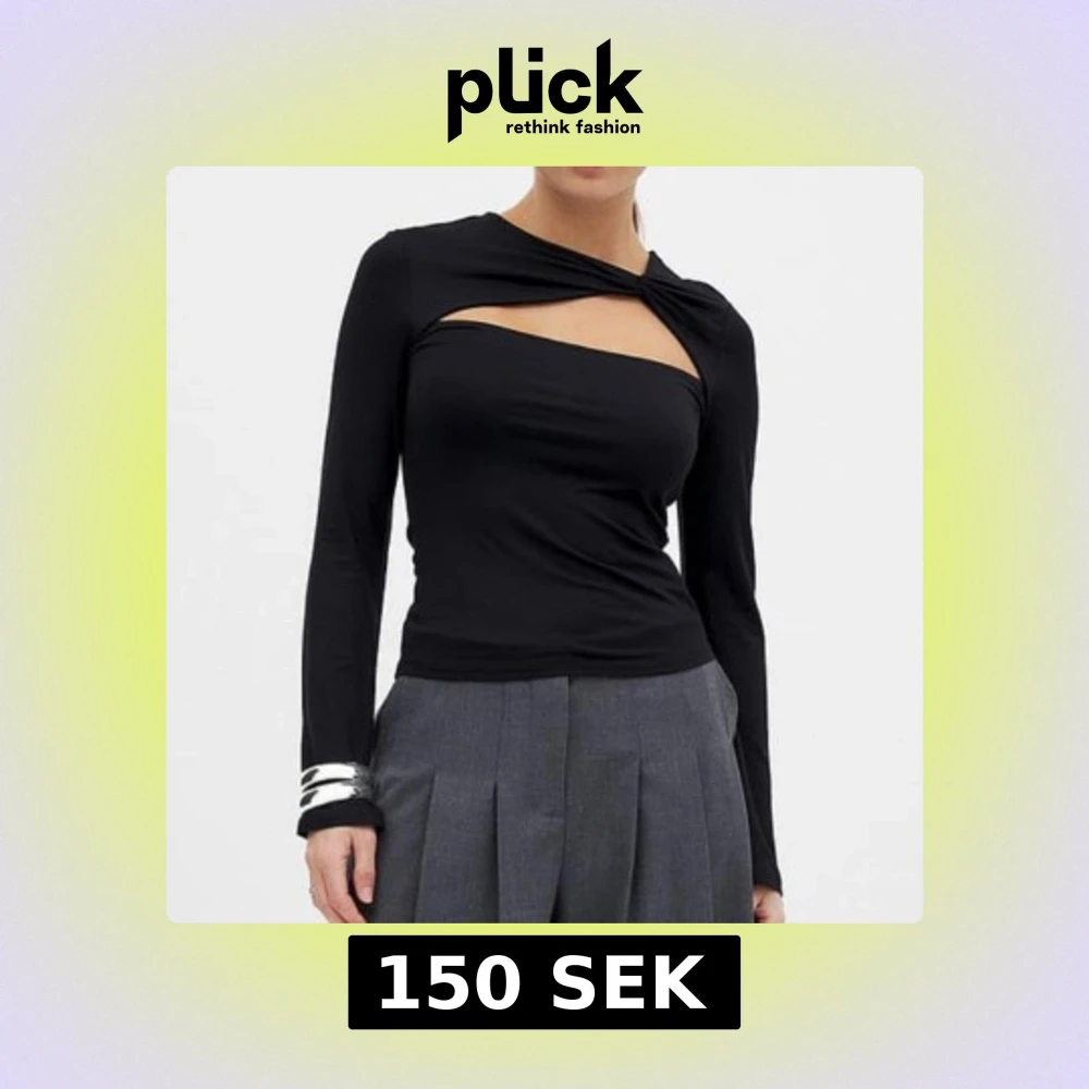 Svart långärmad topp med cool cut out-detalj över bröstet. Sitter tight och har ett tunt och stretchigt material. Nypris 349kr, säljer för 150. Använt fåtal gånger, gott skick!😊💕 PS: köp gärna via instabox, postar snabbare då (inom 24h)🥰