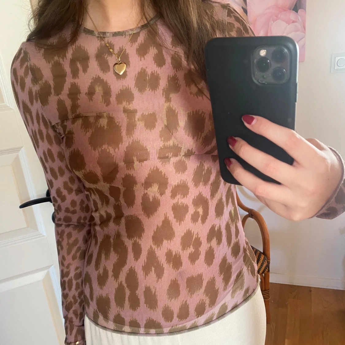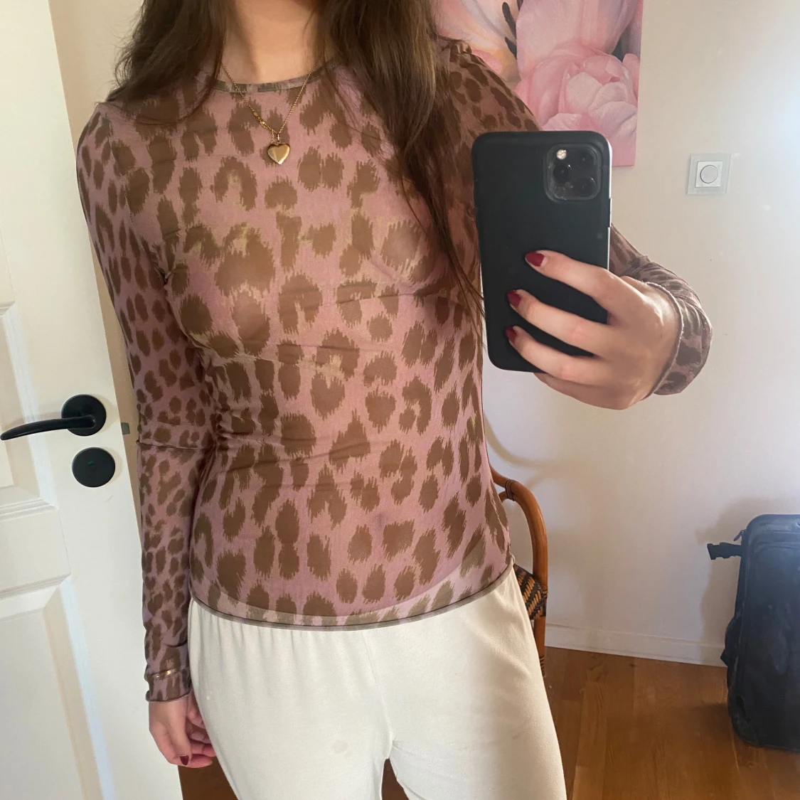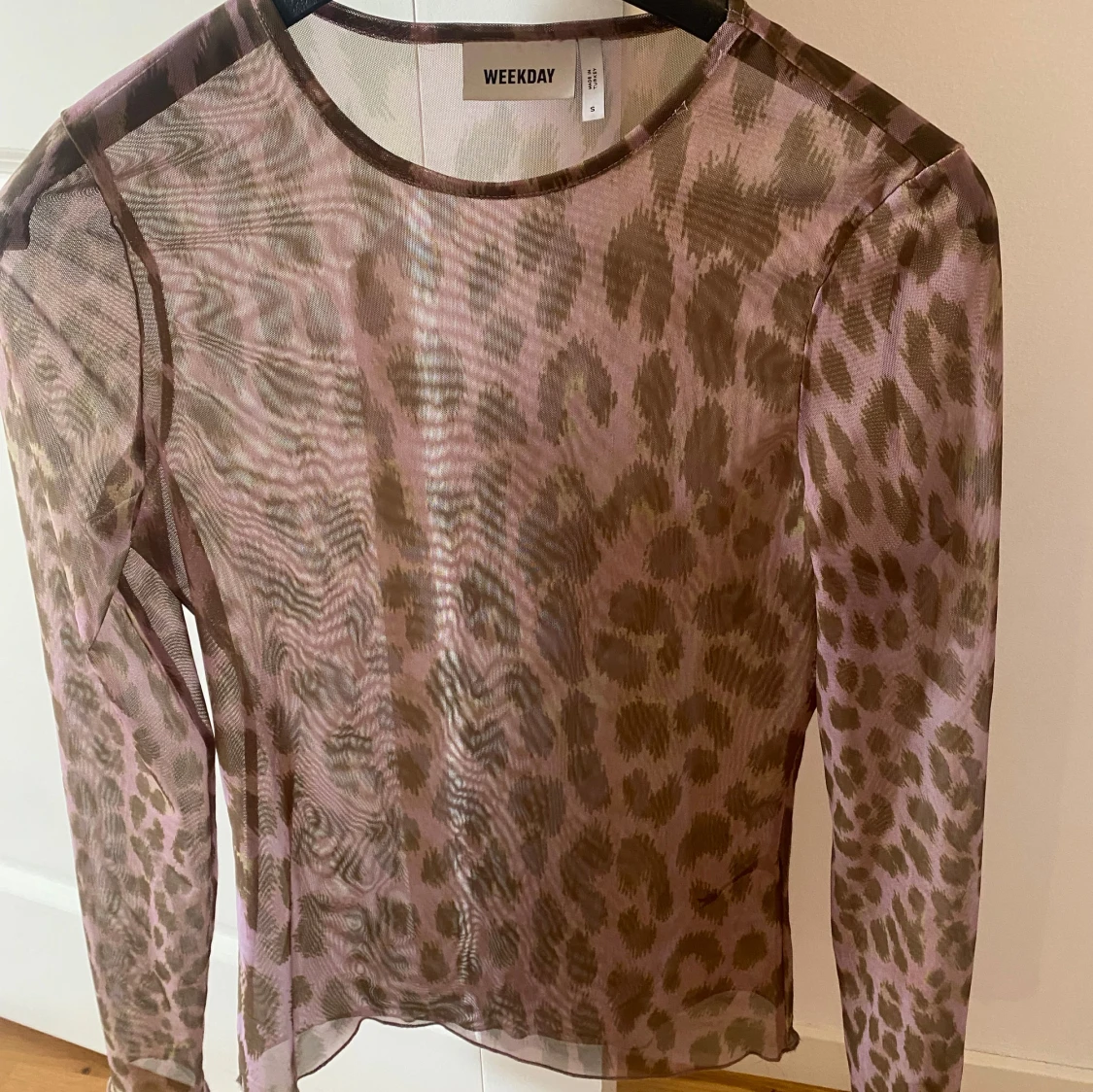 Säljer en trendig leopardmönstrad meshtröja från Weekday. Tröjan är i en snygg kombination av rosa och bruna toner och har långa ärmar.