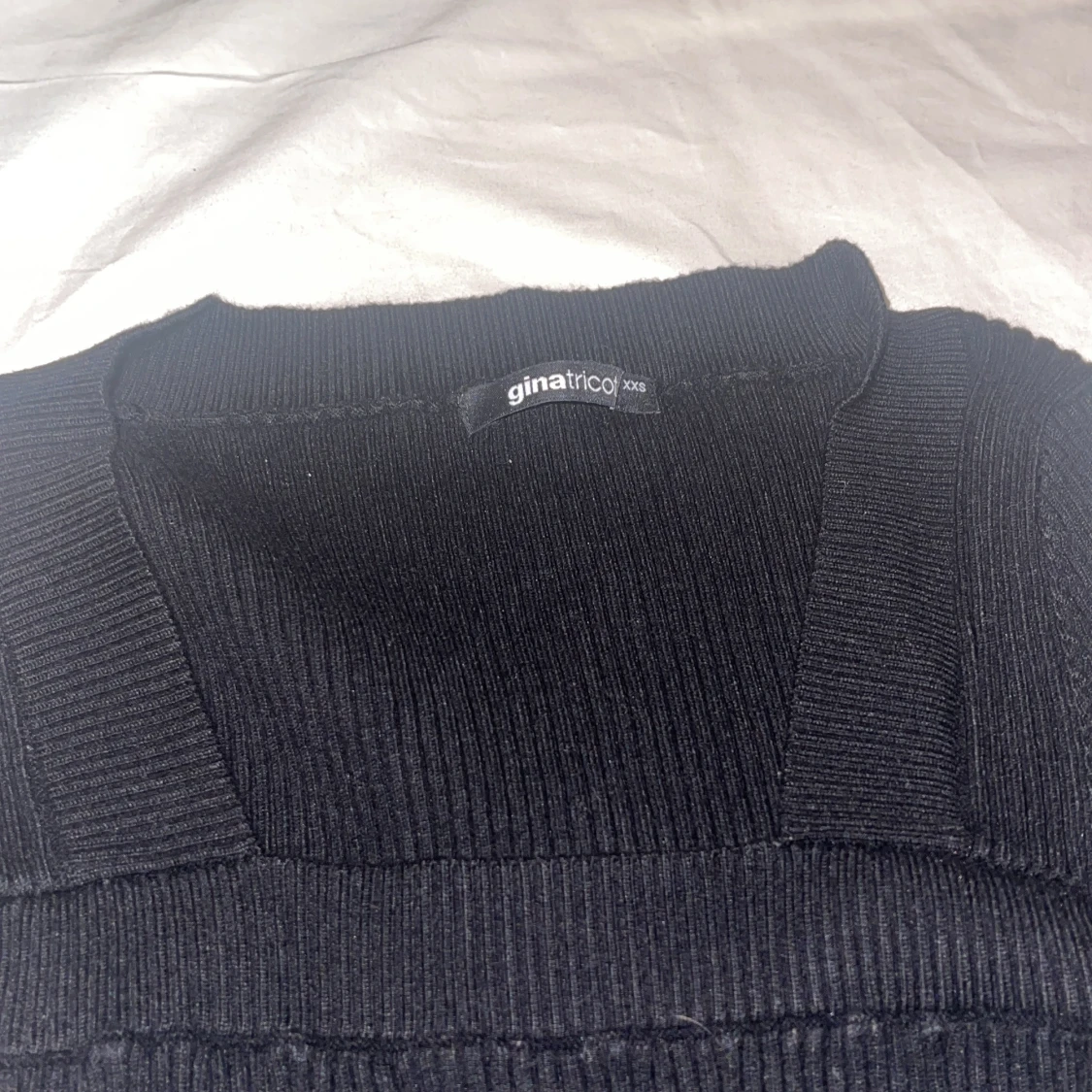 Svart långärmad tröja från Gina Tricot i storlek XXS. Tröjan är ribbad och har en snygg v-ringad halsringning. Den är i bra skick då ja aldrig använt den. skriv om ni har fler frågor eller vill ha fler bilder och pris går att diskutera💕💕