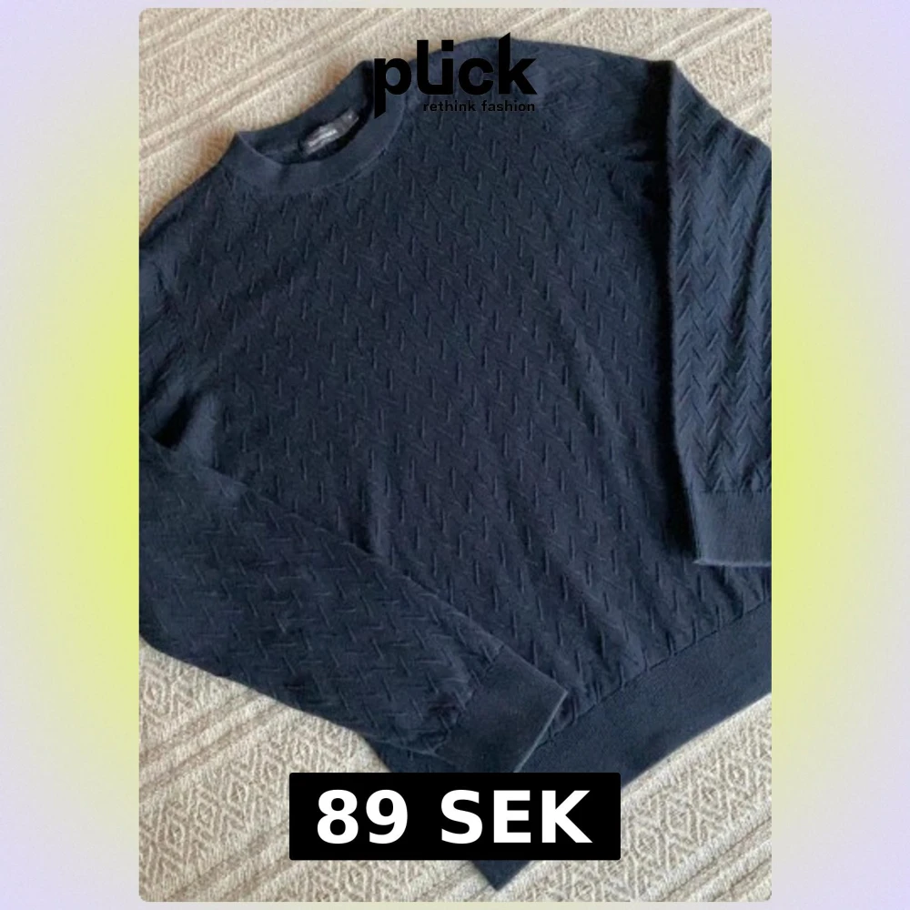 Snygg mörkblå stickad tröja från Dressmann i storlek M. Tröjan har ett diskret strukturmönster och rund hals med ribbade muddar vid ärmslut och nederkant. Perfekt för dig som gillar stilrena och klassiska plagg med lite extra detalj.