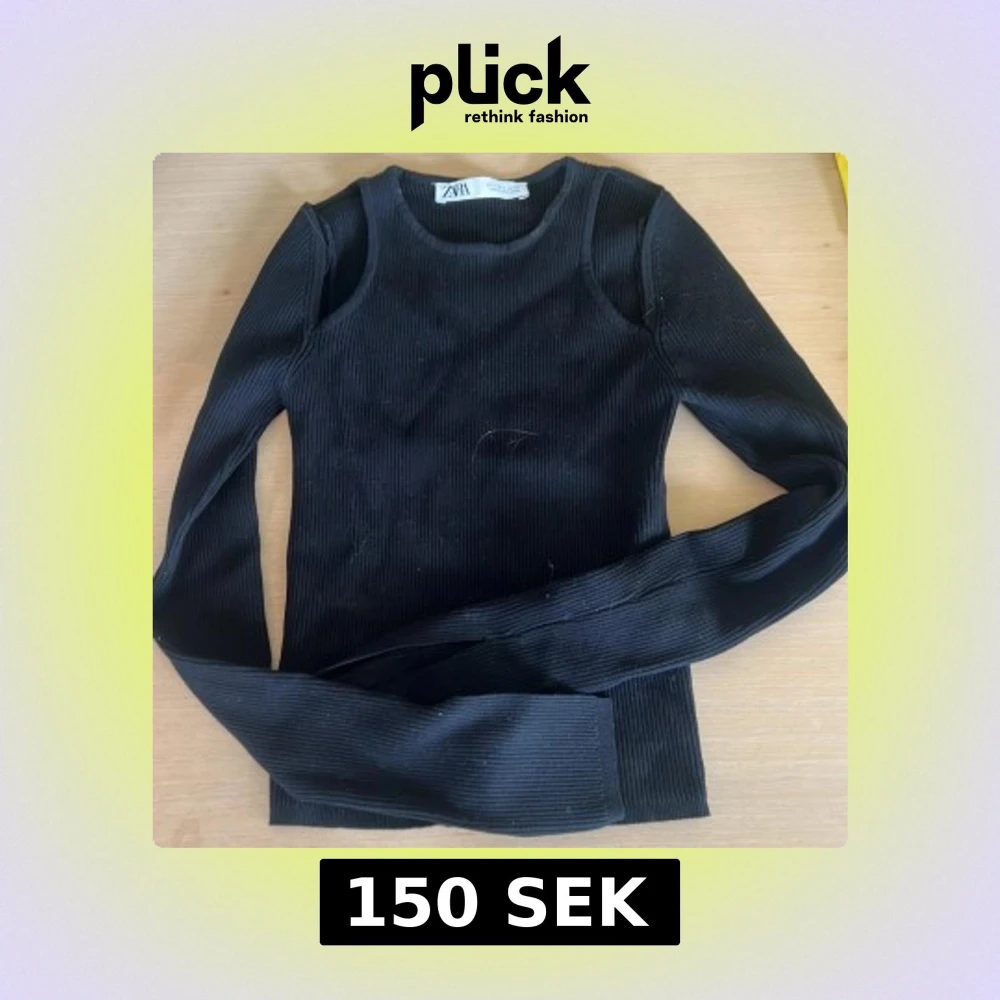 Svart ribbad långärmad topp från Zara med tight passform. Tröjan har rund halsringning och är tillverkad i ett stretchigt material som sitter snyggt på kroppen. Perfekt att styla med jeans eller kjol för en clean look.