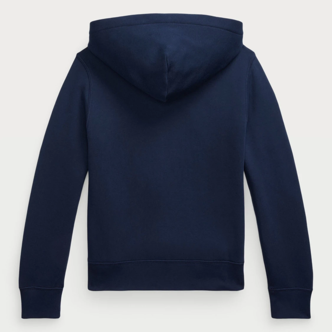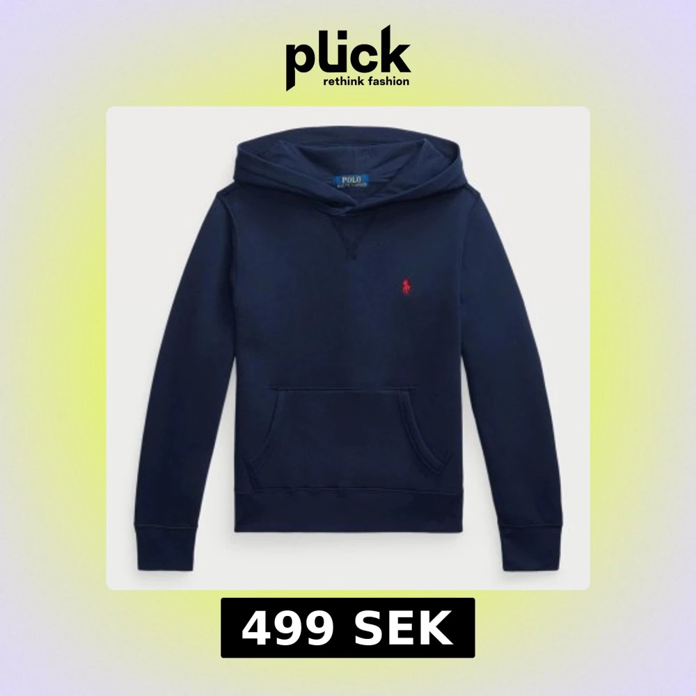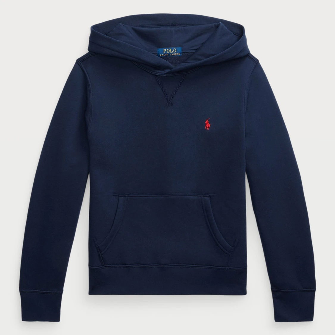 Snygg marinblå hoodie från Polo Ralph Lauren med klassisk röd logobrodyr på bröstet. Tröjan har huva, känguruficka och långa ärmar. Tillverkad i mjuk bomull som är skön mot huden. Perfekt för chill dagar och enkel att matcha med jeans eller joggers. 14/XS.