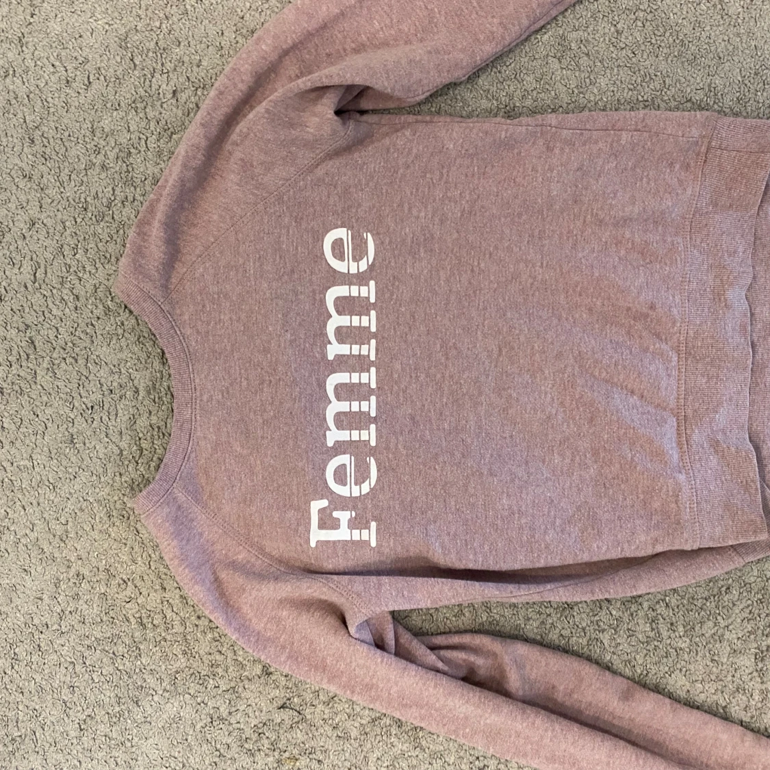 Säljer en rosa tröja med texten ”Femme” 🥰