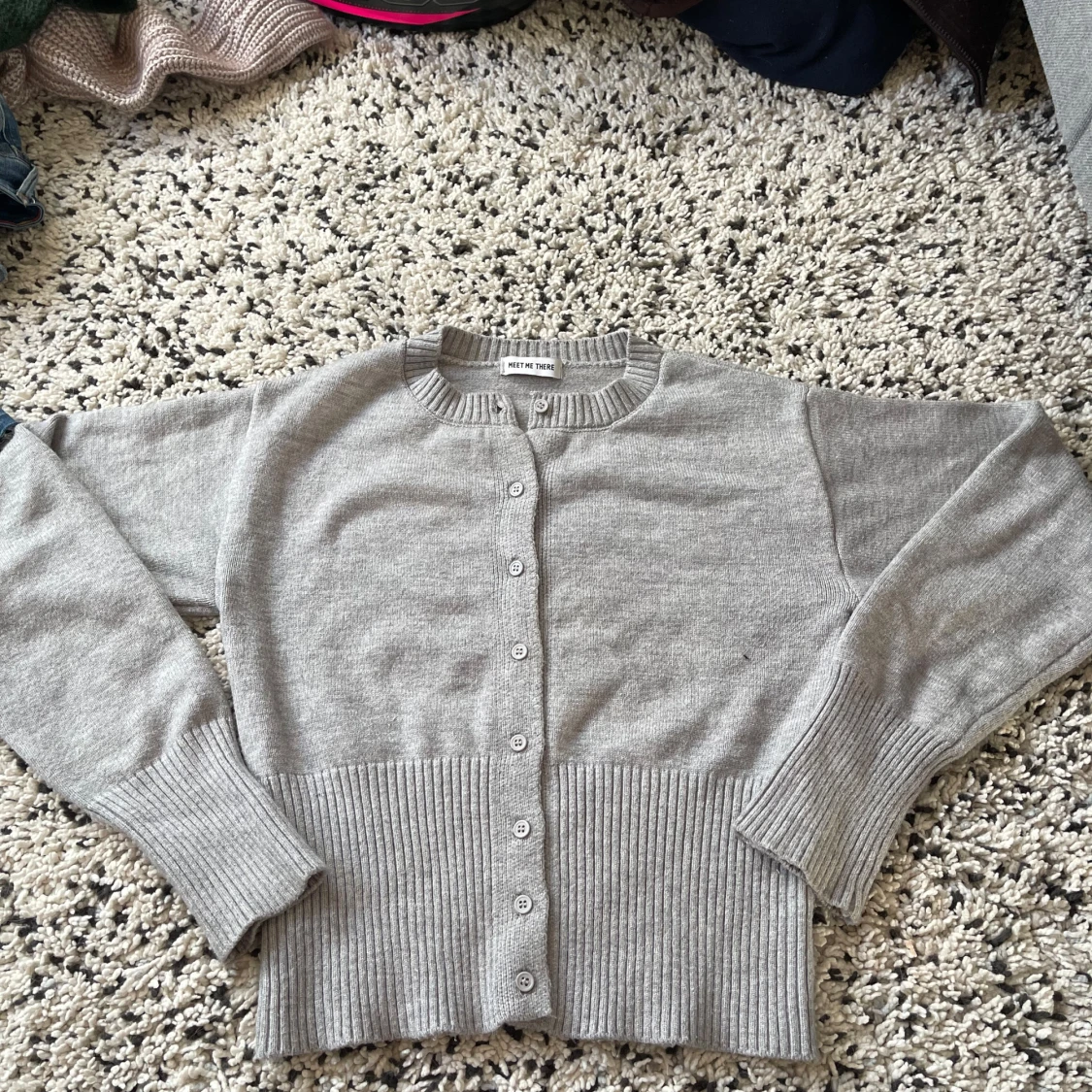Säljer en grå kofta från meet me there jätte fin men får tyvärr ingen användning av den. Helt nytt skick.