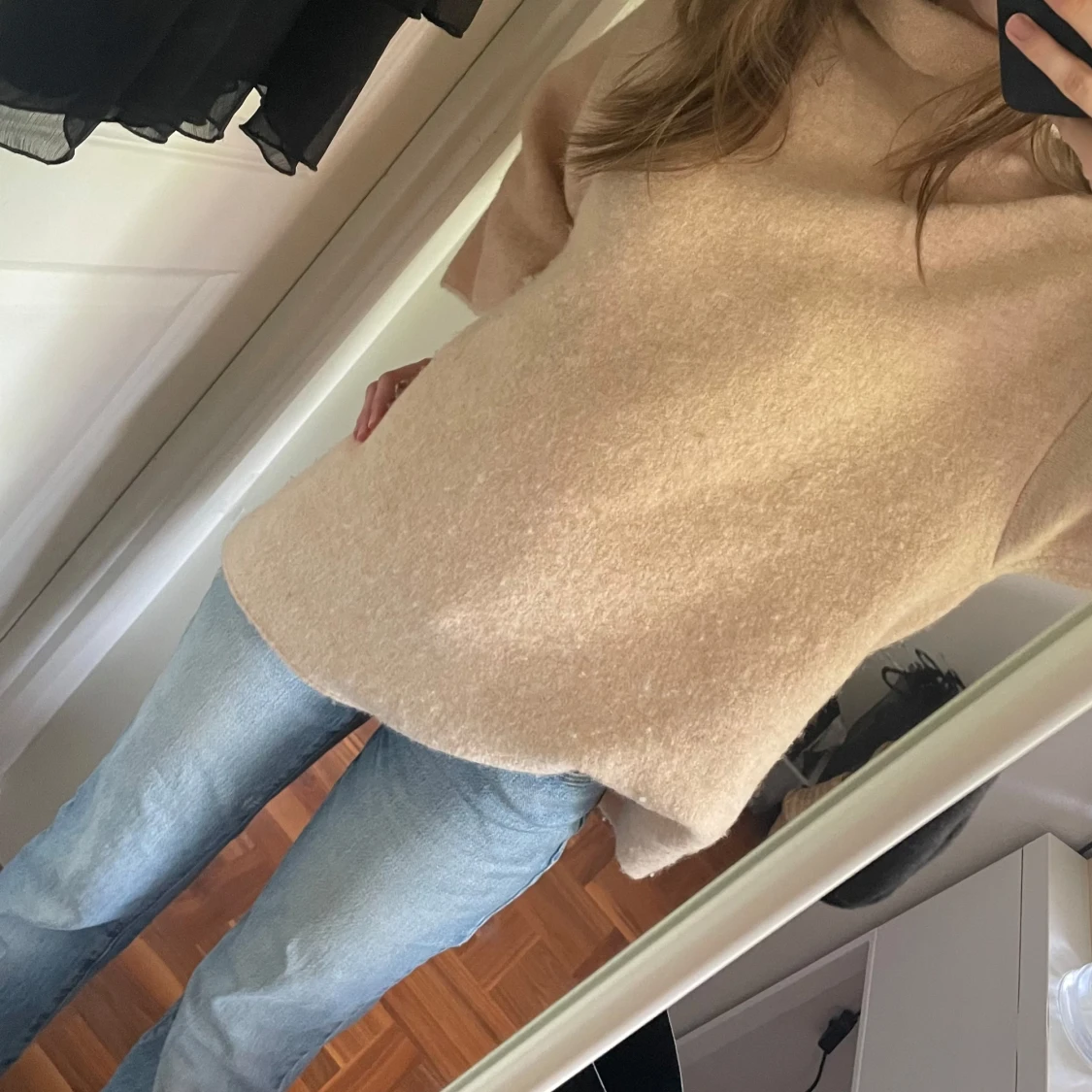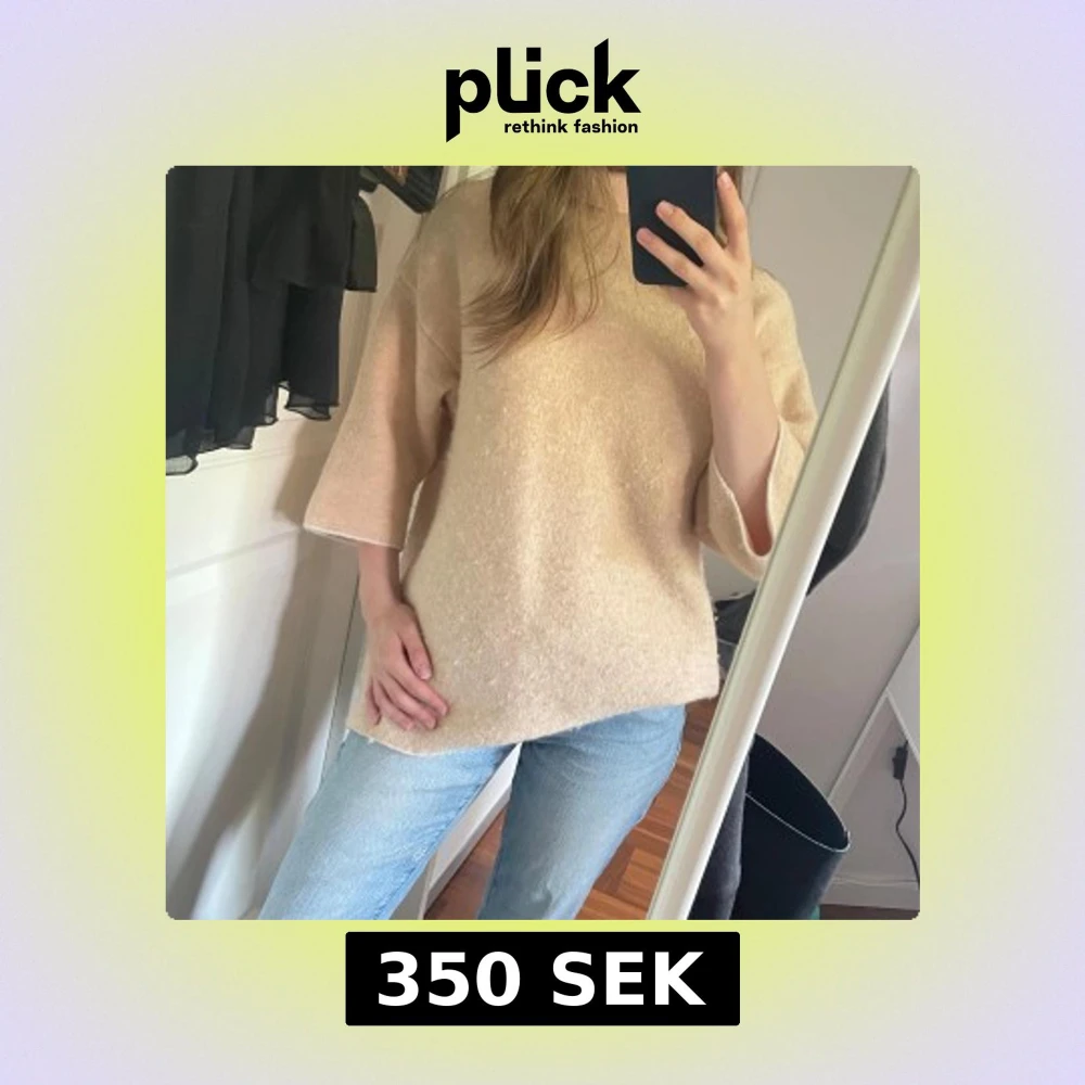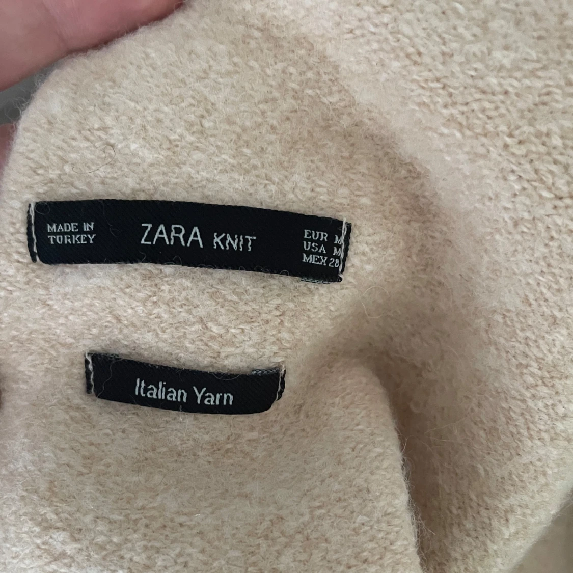 Oversized beige stickad tröja med trekvartsärmar och rund hals från Zara. Passar till jeans eller kjol för en avslappnad look. Tröjan är i storlek M, men passar mig som vanligtvis är S/XS. Använd en gång!