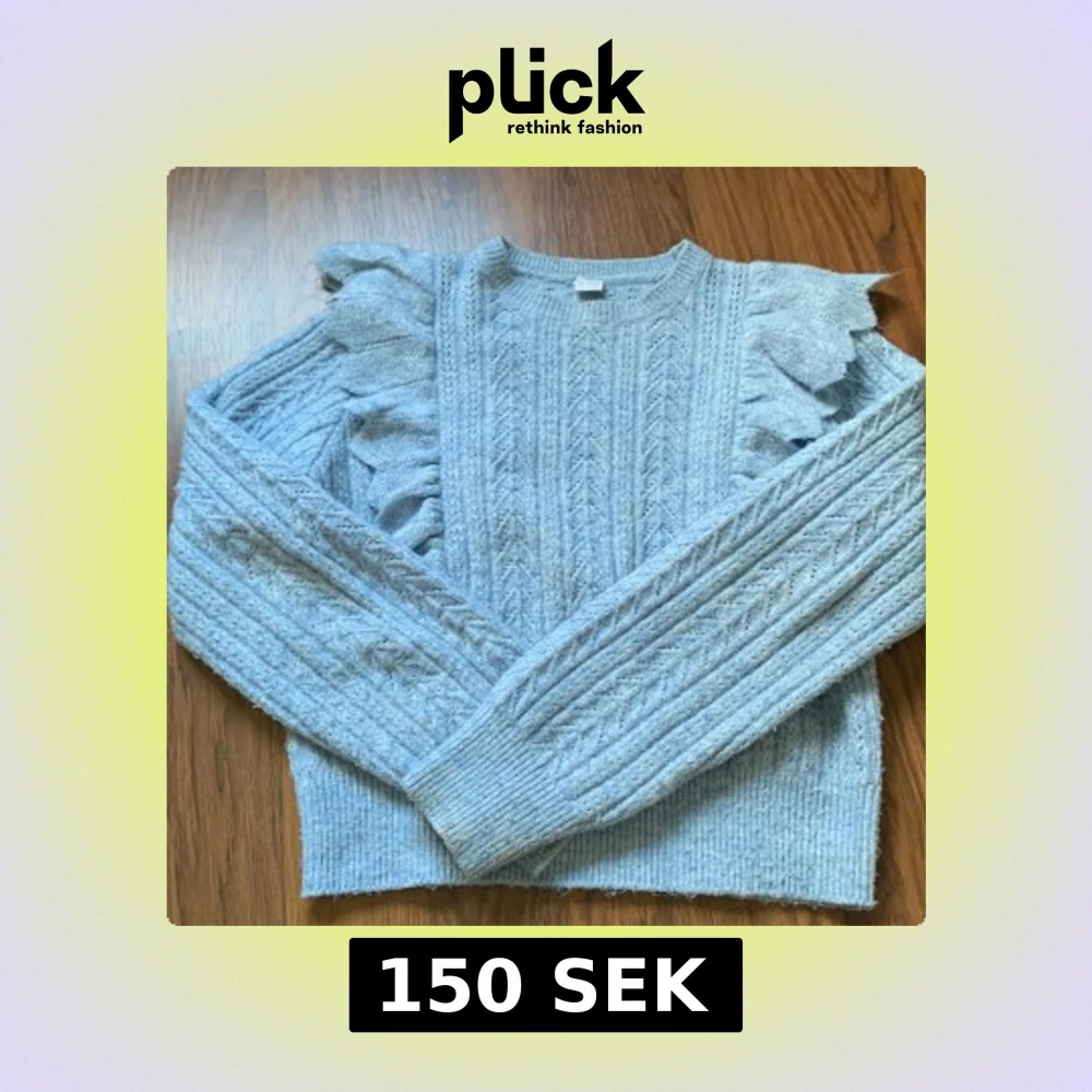 Superfin ljusblå stickad tröja från Lindex med volangdetaljer längs axlarna. Tröjan är stickad och väldigt mjuk💕