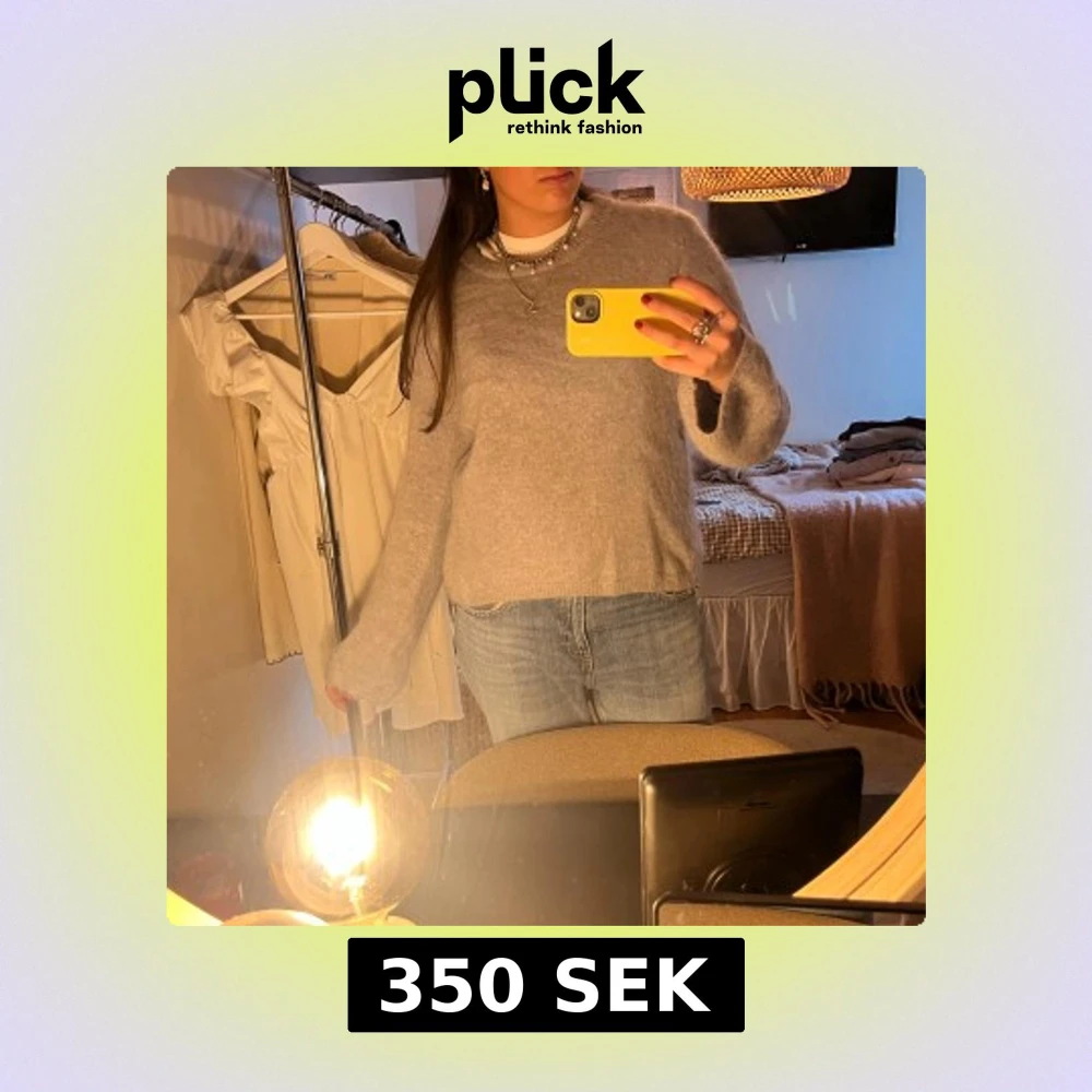 Mysig ljusgrå stickad tröja med rund hals och långärmad passform🩶🩶🩶