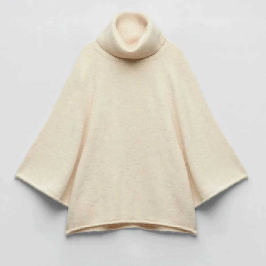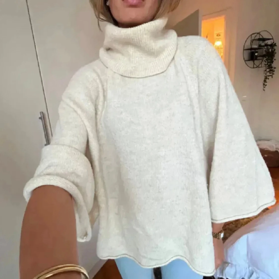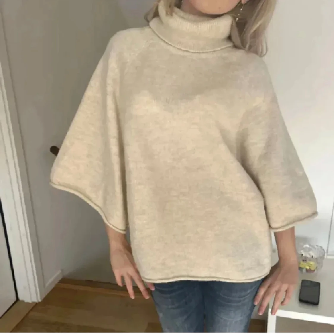 Supermysig beige polotröja från Zara med breda trekvartsärmar, slutsåld på hemsidan🤩 använd men i bra skick☺️