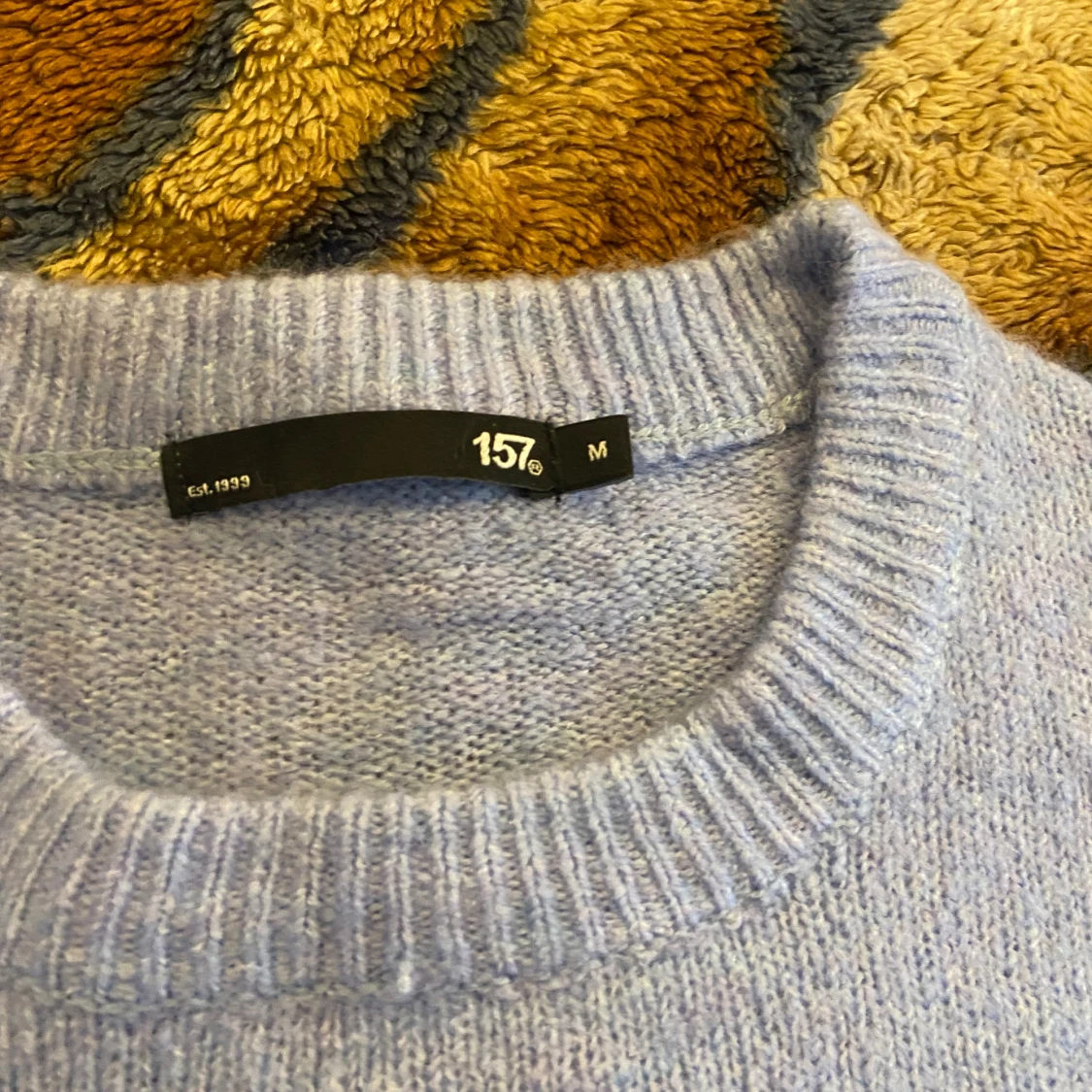 Supermysig ljuslila stickad tröja från 157 med rund halsringning och ribbade muddar vid ärmslut och nederkant. Perfekt för lager-på-lager och chill dagar. Enkel och stilren design som funkar till allt.