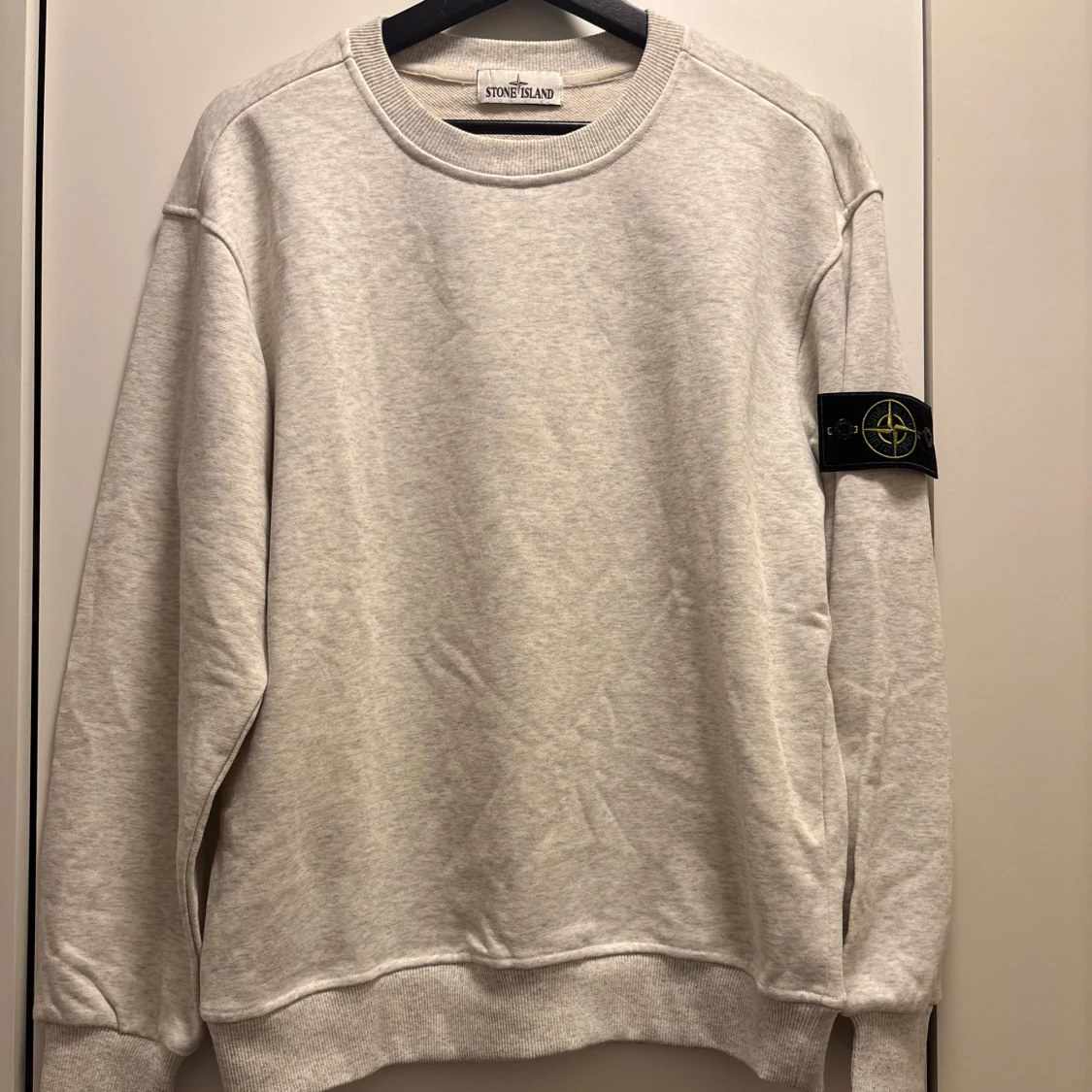 Snygg ljusgrå sweatshirt från Stone Island med klassisk rund hals och ikonisk logga på vänster ärm. Tröjan har ribbade muddar och är tillverkad i mjuk bomull för maximal komfort. Perfekt för dig som gillar stilrena och trendiga plagg.