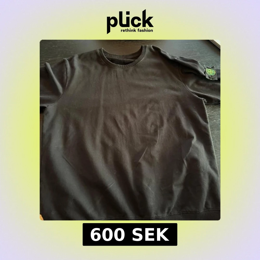 Säljer en stilren svart sweatshirt från Stone Island med deras ikoniska logga på ärmen. Tröjan har en klassisk rund halsringning och långa ärmar. Perfekt för en casual look.