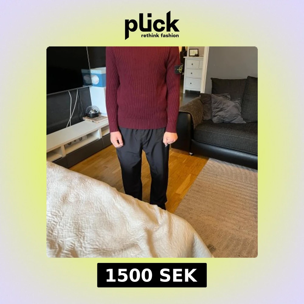 Säljer en vinröd stickad tröja från Stone Island i storlek L ( liten i storlek passar S ). Tröjan har ribbade muddar och klassisk Stone Island patch på vänster ärm. Modellen är långärmad och har en snygg, normal passform som funkar till många olika stilar.